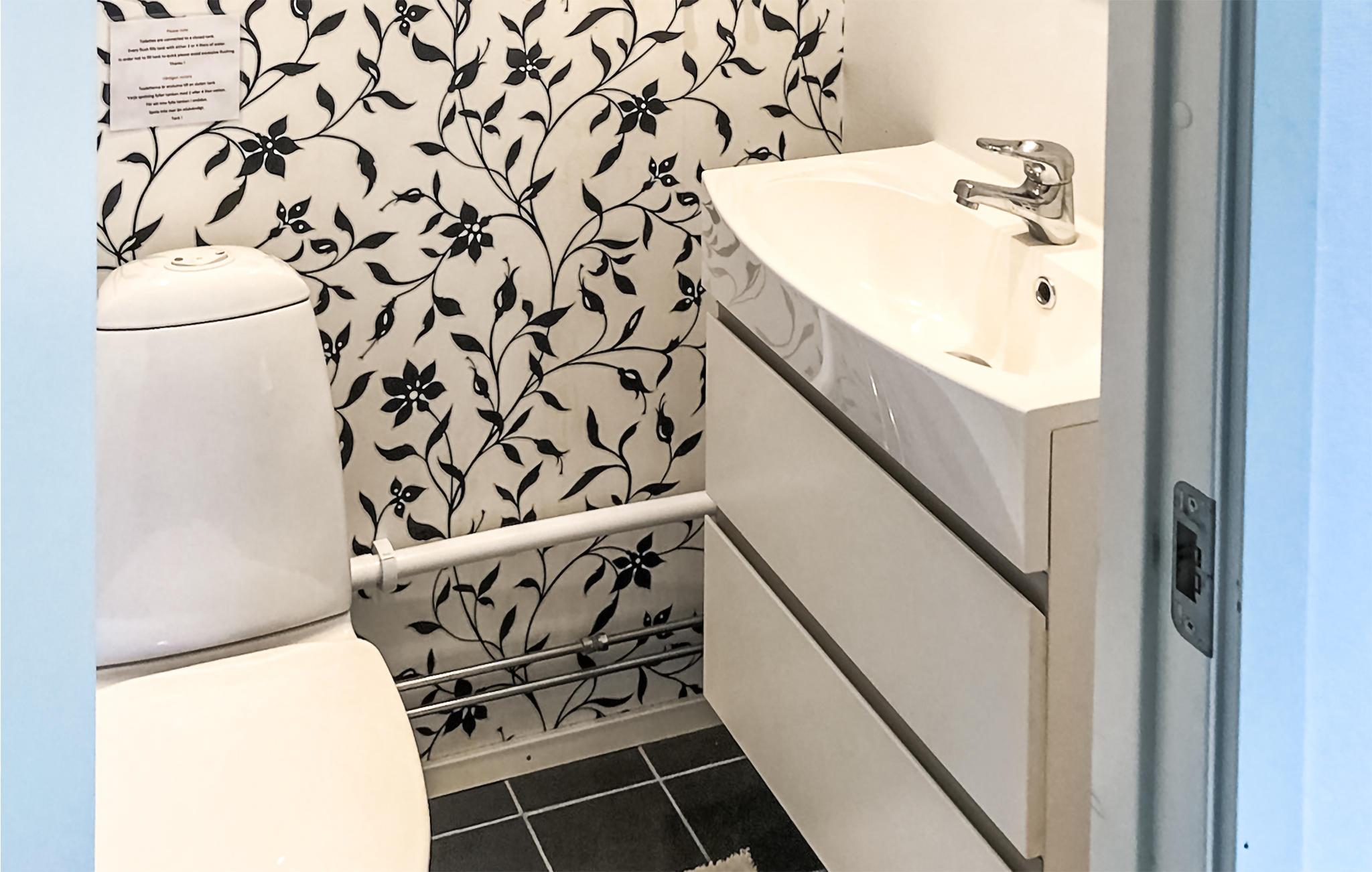 Badeværelse (nr. 2) - WC. Varmt og koldt vand. Bruser