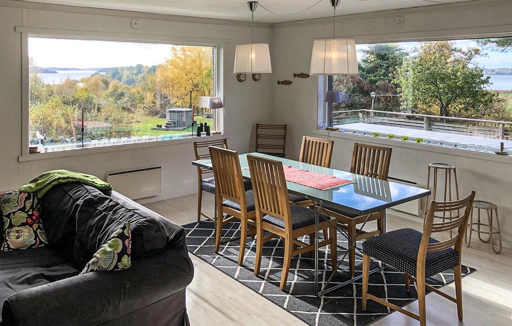 Dette skønne sommerhus ligger smukt nord for Gøteborg. Huset byder på et komfortabelt indrettet interiør og flere hyggekroge til rolige timer for jer selv eller med jeres kære. Saml jer rundt om spisebordet til hyggelige måltider, mens I ser ud på landskabet. På kølige dage kan I nyde godt af de to pejse eller gå i sauna. Den store, private have byder på masser af plads til sjov og leg for børn og voksne. Tilbring solrige timer på terrassen med udsigt over havet og lad senere dagen ende med afslapning i vildmarksbadet.