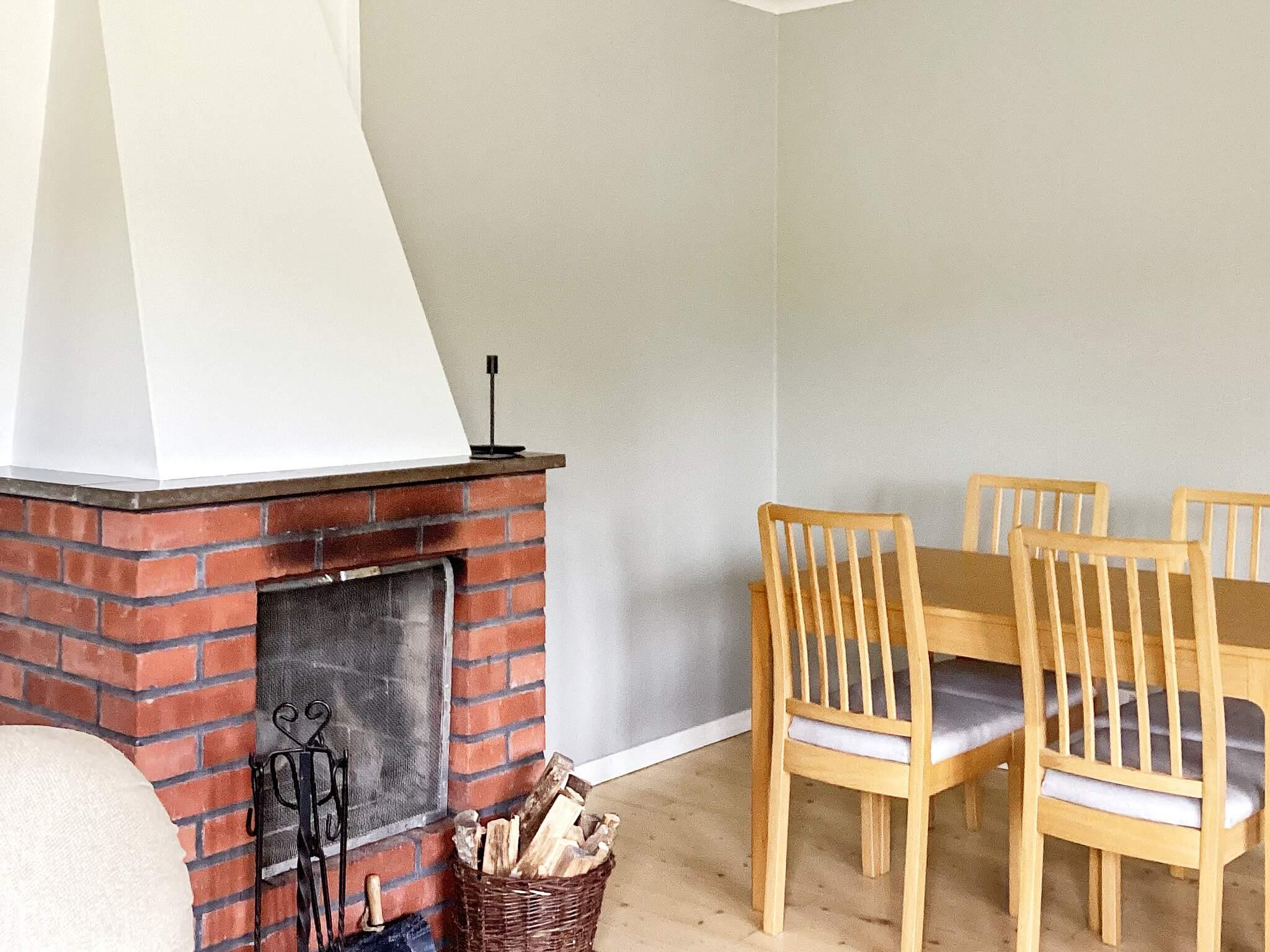 Du välkomnas in i husets hjärta, köket. Här är det vitt och lantlig hemtrevlig stil. Allt känns nytt och fint. Här finns matplats för 4-6 personer. Köket har det mesta man kan behöva med kyl/frys, mikro, kaffekokare. Huset har två sovrum. Det ena med en säng på 180 cm och i rummet intill står en våningssäng. Perfekt för familjen eller sällskap på 4 personer. Badrummet är smart planerat med wc, handfat, duschkabin och en tvättmaskin. Bra om ni vill stanna längre vistelser. Vardagsrummet bjuder in till fina kvällar i soffan med soffbord. Här finns också ett matsalsbord och en kamin för kyliga kvällar. I detta hus kommer man trivas gott där varje kvadratmeter är smart planerad.