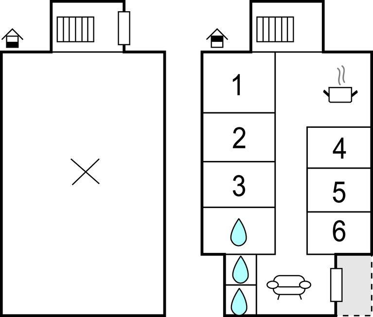 Soveværelse (nr. 1) - 1 Soveplads. (Enkeltseng(e)). 2 Sovepladser. (Dobbeltseng(e)).