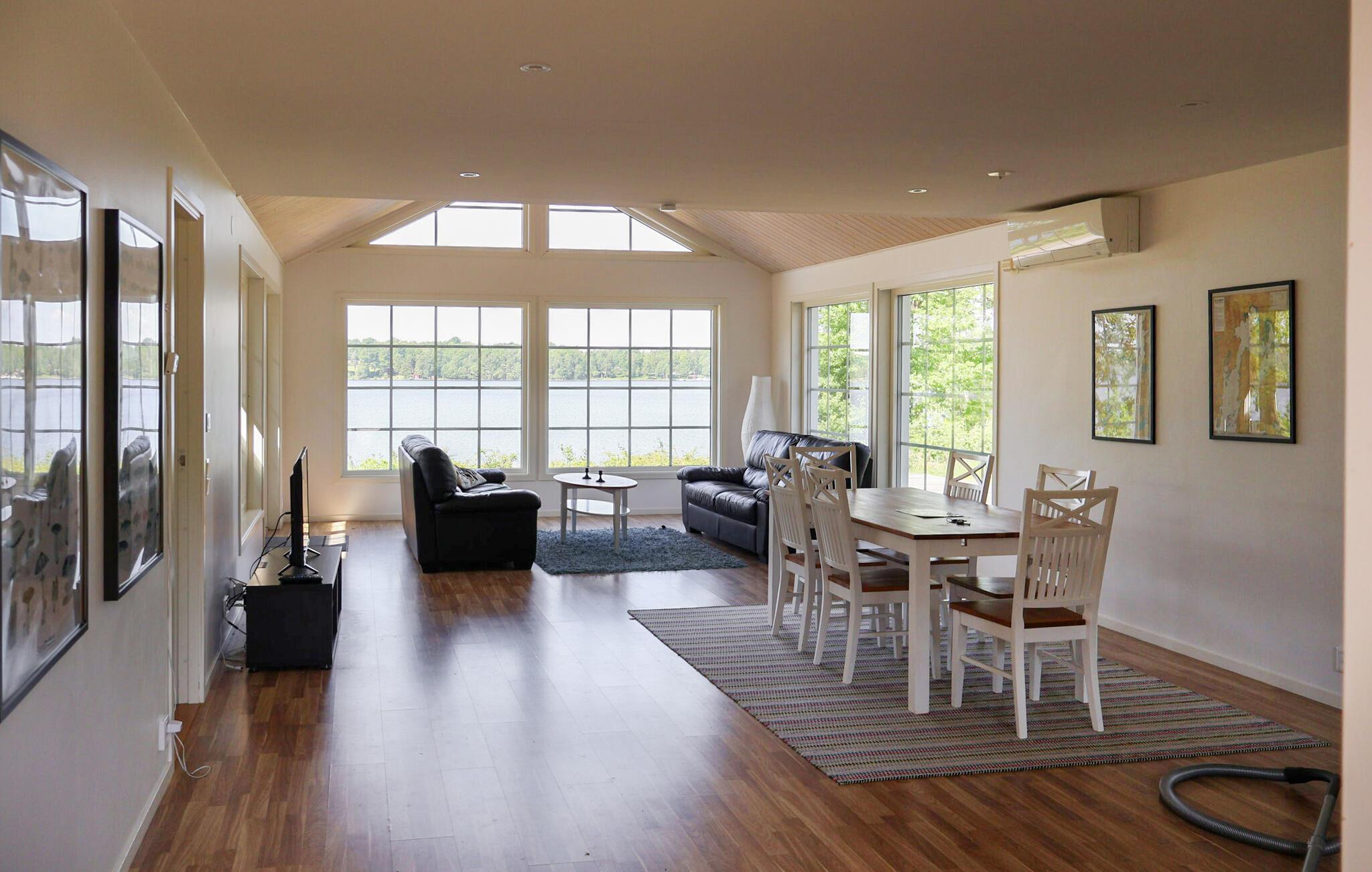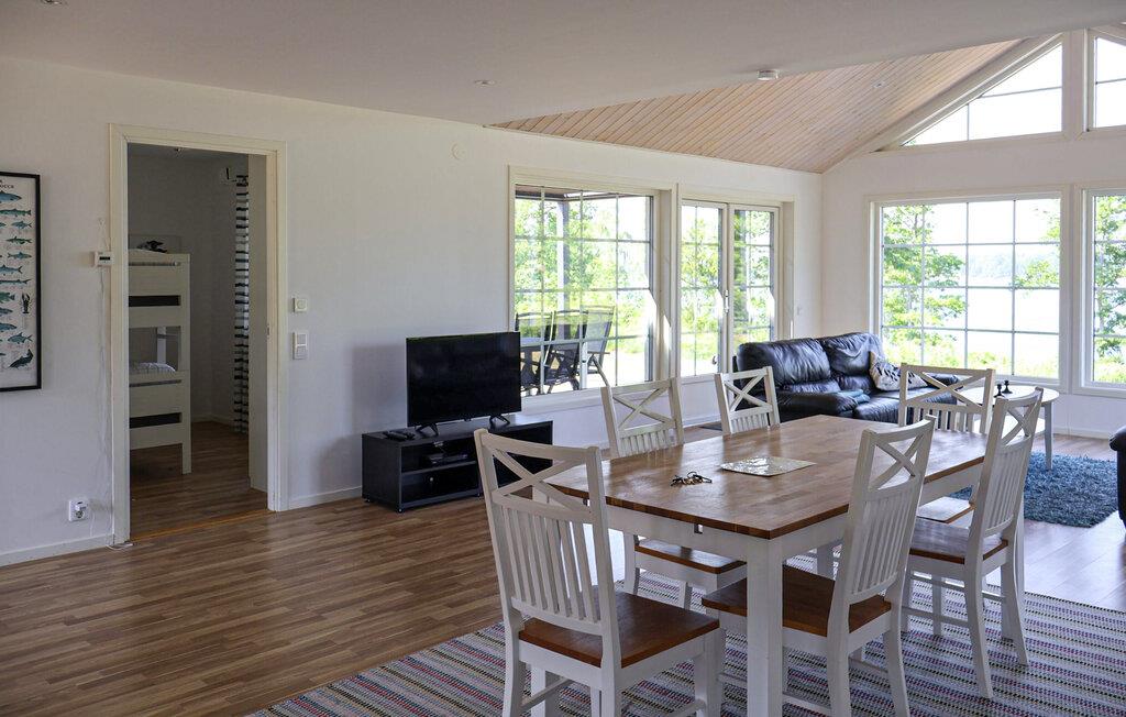 Nyd udsigten fra de store vinduer, kig ud over Bolmen fra dette skønne moderne feriehus. En lille sti fører ned til vandet med både dejlig badestrand og en bro, hvor båden ligger klar. I det store køkken de er åben mod stuen, er der god plads til at lave feriemaden sammen. Tre soveværelser, to med direkte udgang til terrassen. I søen Bolmen er der mange gedder, aborrer og sandart her er også 365 øer hvor der mange dejlige sandstrande til en varm sommerdag. I Lagan ligger en elgpark, et legland og en god 36-huls golfbane. Køb ind i i Värnamo eller Ljungby. I kan også besøge Astrid Lindgrens Värld, High Chaparral og opleve den uforfalskede svenske natur i nationalparken Store Mosse.