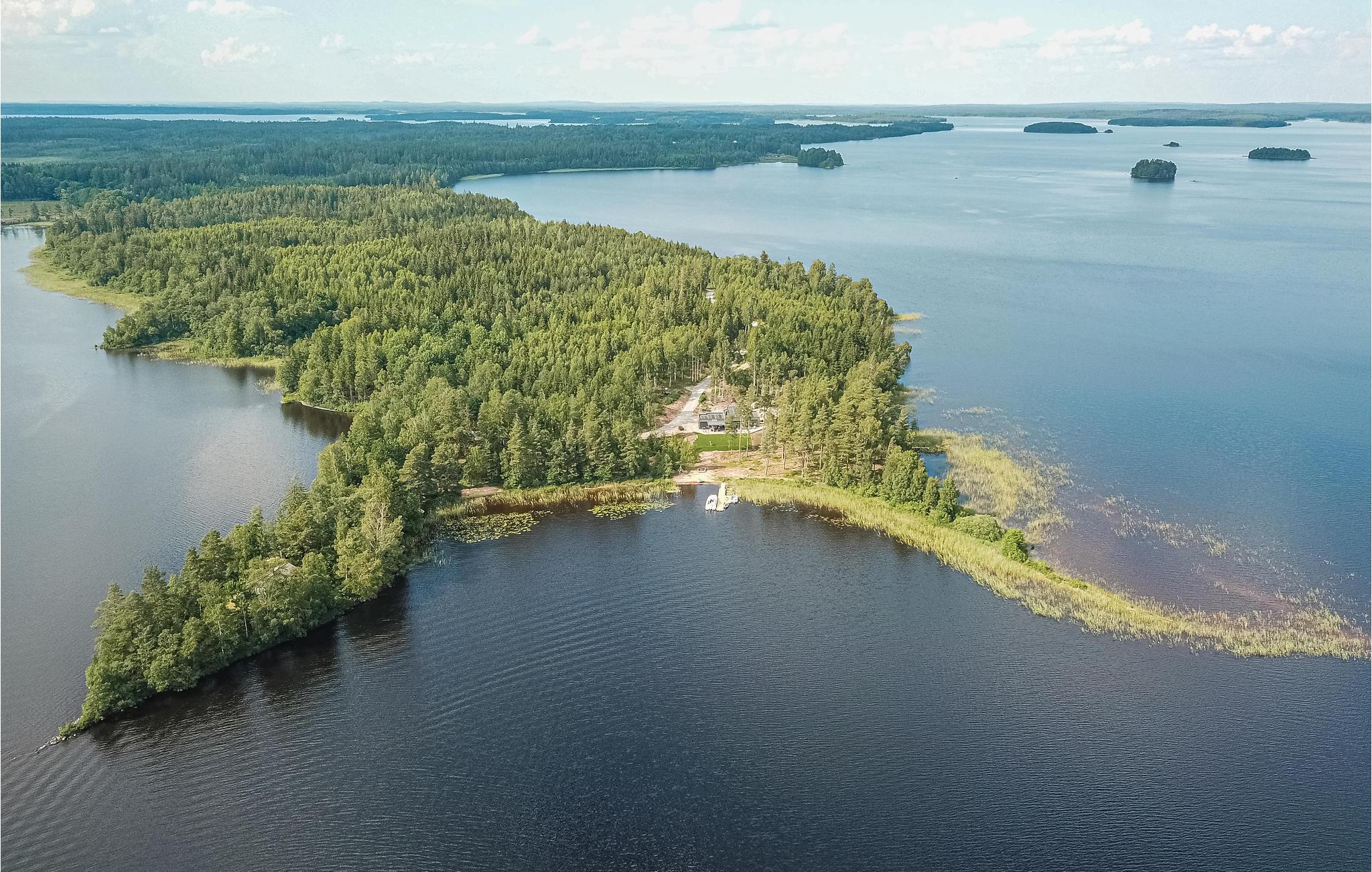 Fra den store terrasse har du en inspirerende panoramaudsigt over Bolmen-søen. Villaen har tre soveværelser, to badeværelser og et gæstetoilet. Saunaen med udsigt over søen er meget beroligende. Stort veludstyret køkken med dejlig spiseplads på første sal. Stue med TV, pejs og komfortable møbler.
