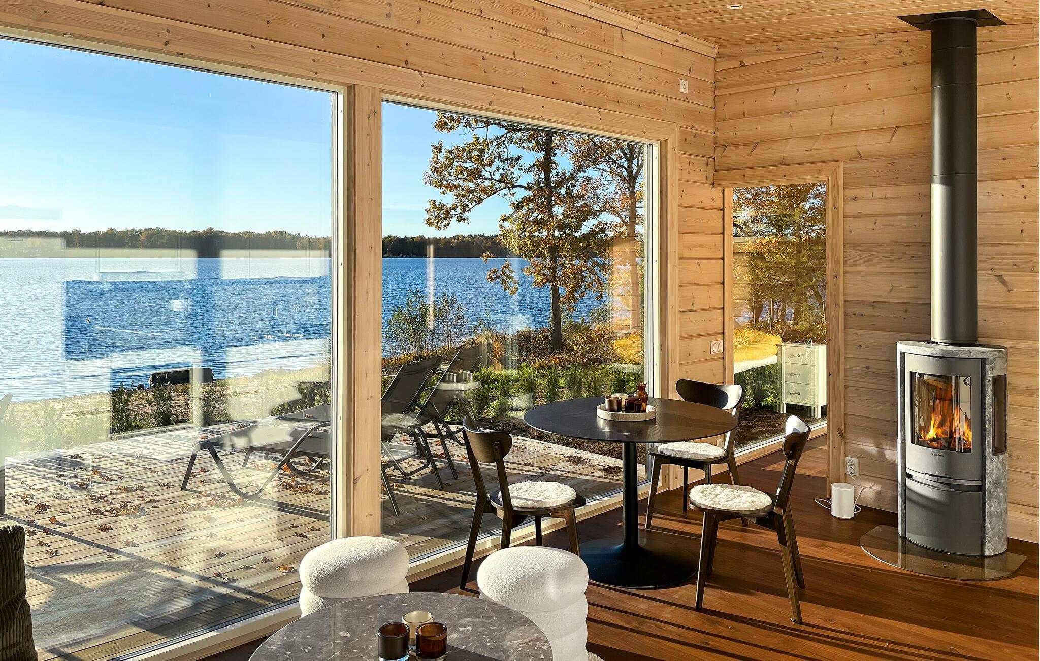 Nyd naturens fred og skønhed i dette stilfulde feriehus, der smelter harmonisk sammen med landskabet. Her har I en førsteklasses beliggenhed ved søen og oplever vandet tæt på – fra morgenmad på terrassen til solnedgangen over bølgerne. Nyd det lyse, moderne interiør med store panoramavinduer, der tilbyder en betagende udsigt over søen. Læn jer tilbage i den komfortable sofa eller slap af ved brændeovnen, mens ilden knitrer sagte. Tilbered jeres måltider ubesværet i det moderne, åbne køkken med rene linjer og smart udstyr. Morgenmaden smager dobbelt så godt ved spisebordet med udsigt over søen.
