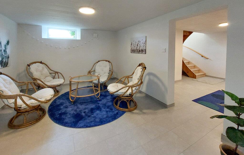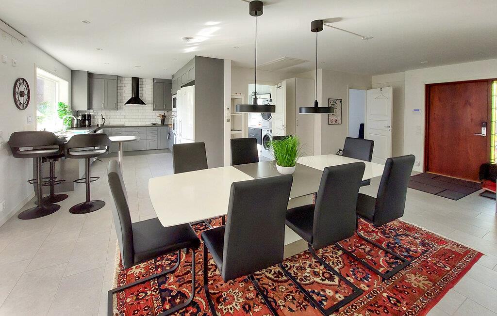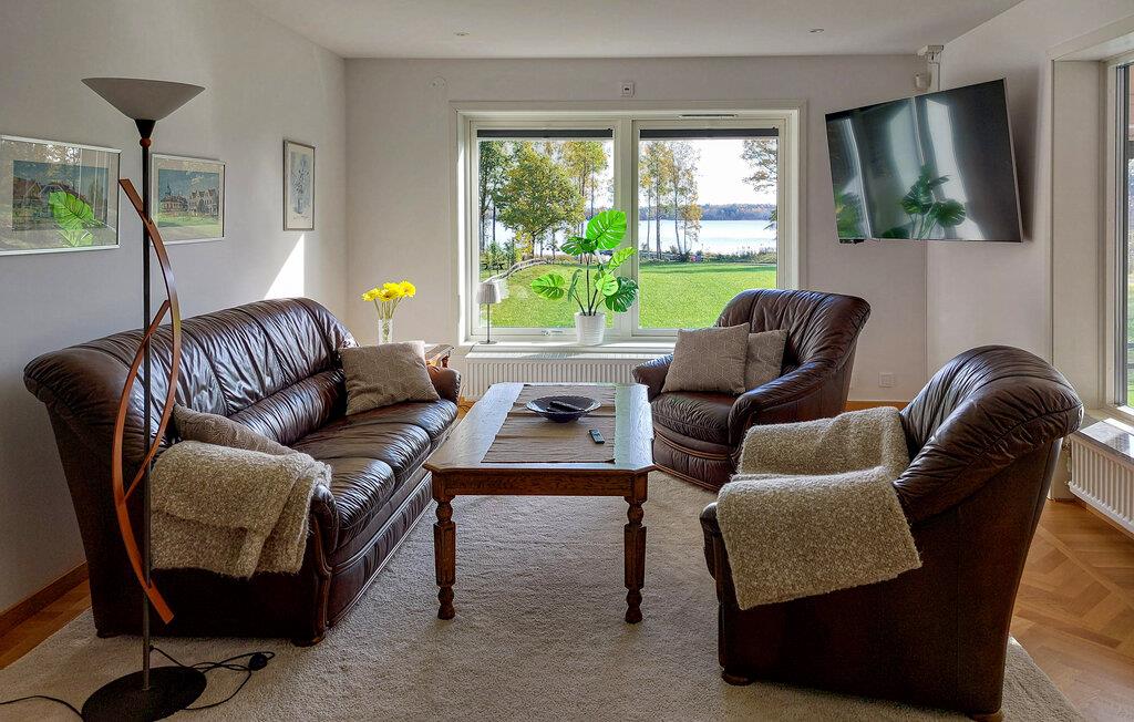 I Bollstad venter dette vidunderlige feriehus, der imponerer med høj kvalitet og smagfulde detaljer. Glæd jer til en vid udsigt over søen og den rummelige have med vidtstrakte grønne områder. Nyd jeres måltider i den lyse spisestue, som er udstyret med moderne møbler og en smuk pejs, der åbner op til en fri udsigt udendørs. Slap af i den komfortable stue med elegante møbler og en indbydende atmosfære. Den store vinterhave er endnu et højdepunkt og ideel til at nyde udsigten over den omgivende natur, uanset vejret. Her kan I starte dagen med en kop kaffe eller afslutte aftenen hyggeligt. Slap også af i den private sauna.