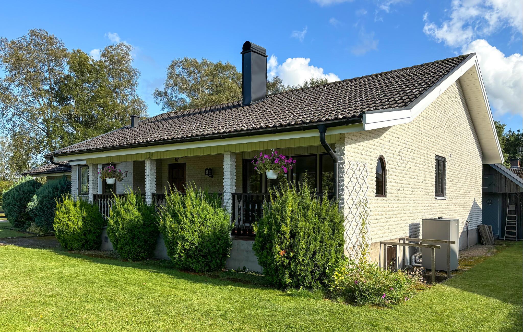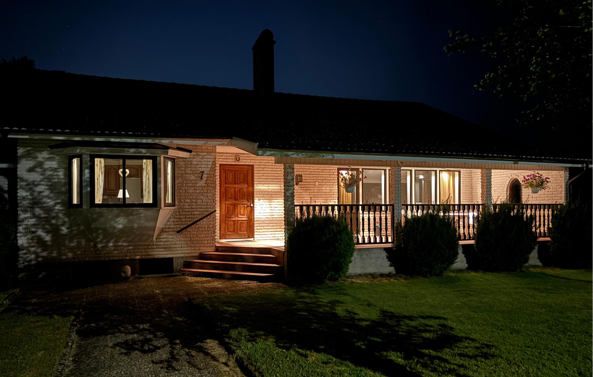 Udendørsområdet lægger op til at slappe af med sin velholdte have og overdækkede veranda. Start jeres morgen med en kop kaffe på landet. Haven byder på masser af plads til børn at lege, mens voksne vil sætte pris på roen i omgivelserne.
