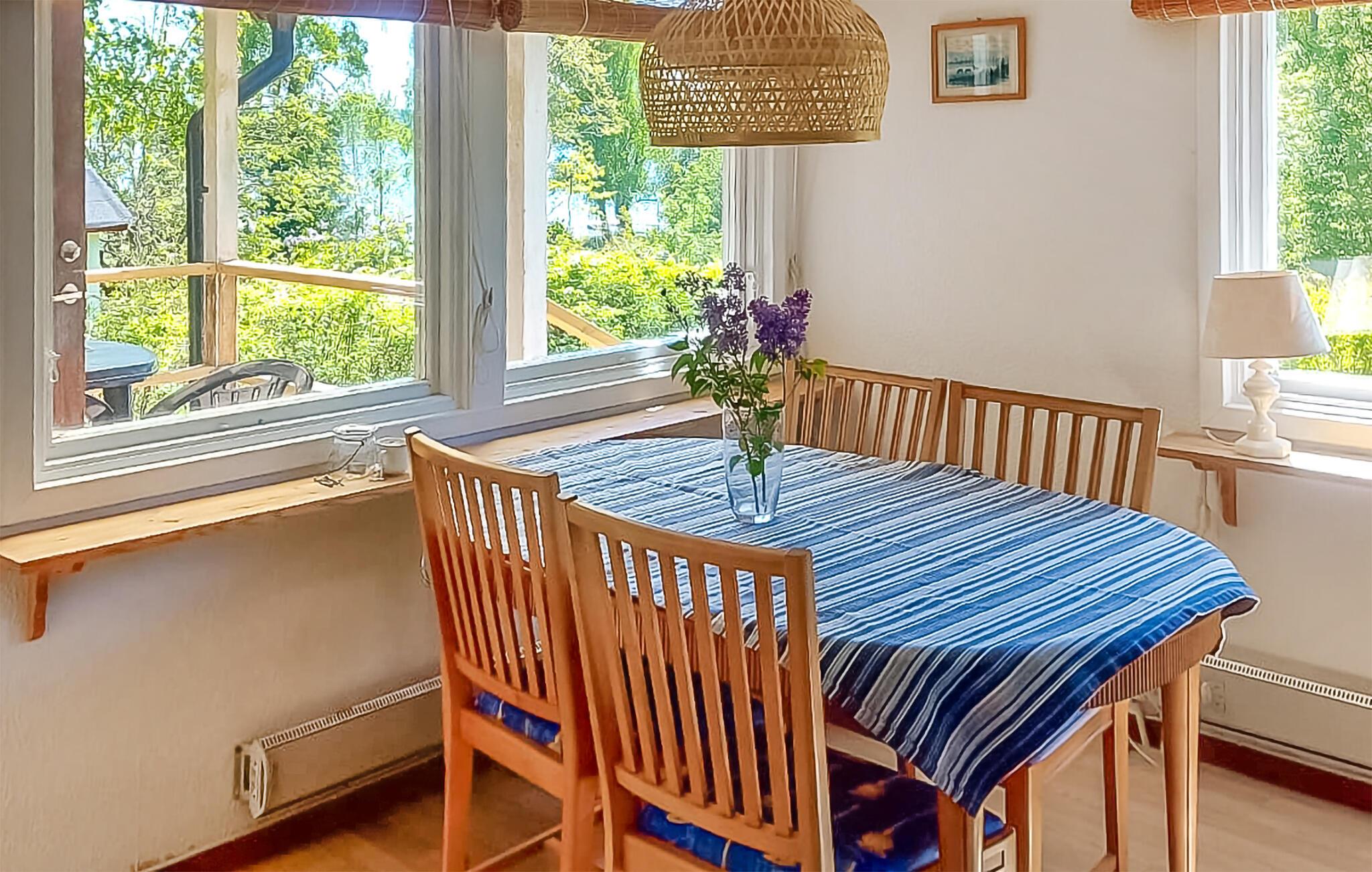 Forkæl jer selv med fred og afslapning og nyd udsigten over søen. Det er præcis, hvad der venter jer i dette fine, lyse feriehus. Møblering og udstyr skaber en praktisk og lysfyldt atmosfære, hvor I kan finde jer godt til rette. Læn jer godt tilbage i sofaen eller gør nogle lækre snacks op i køkkenet, som I kan nyde, mens I spiller kort på terrassen eller i haven.