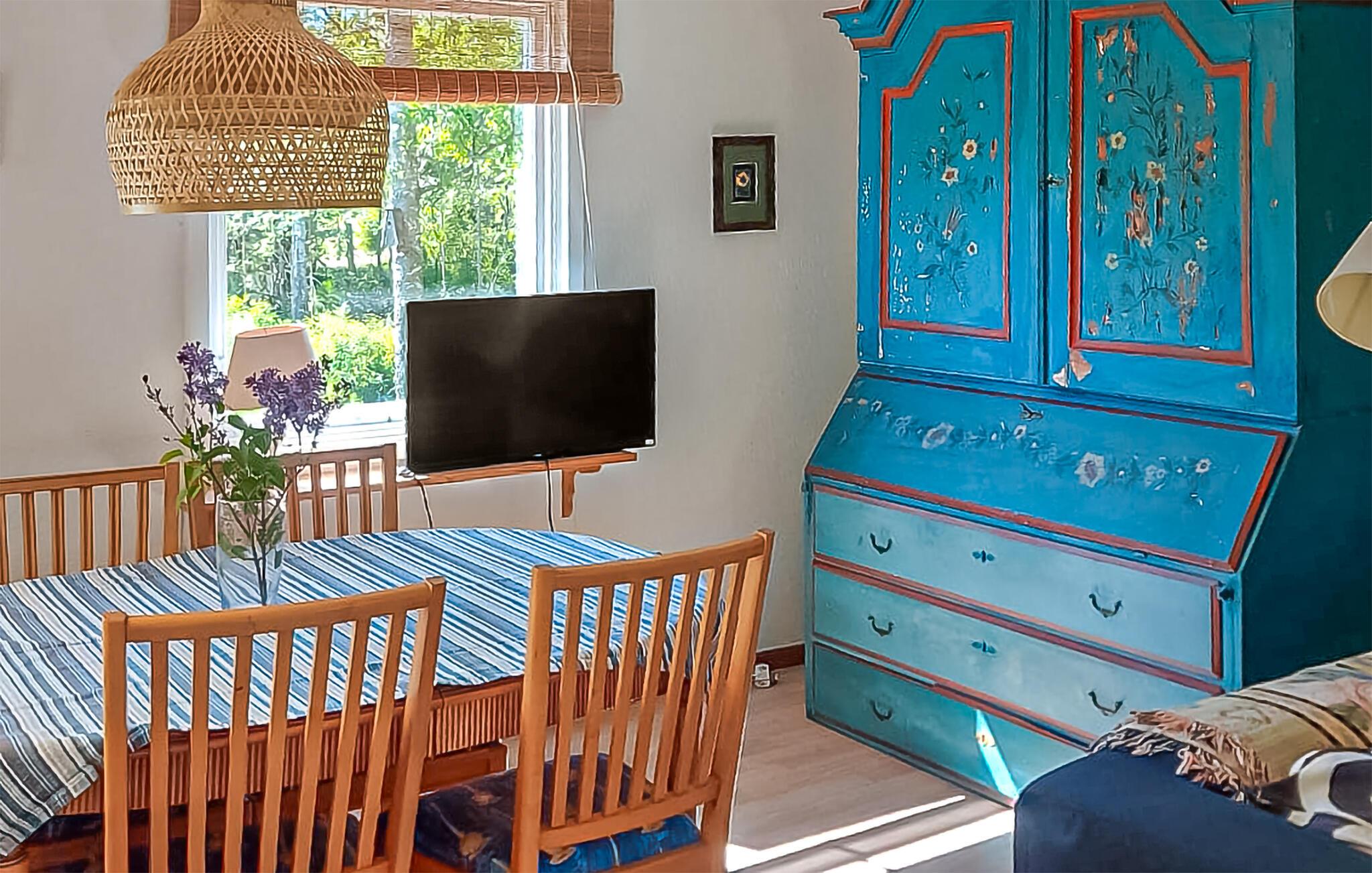 Det fine feriehus er indlejret i et charmerende landskab, hvor der også er en lang række fritidstilbud Tag ud for at udforske vandrestierne og nyd naturen i al sin pragt. Den nærliggende sø lægger op til afslappende bådture og friske svømmeture. Besøg de charmerende omkringliggende landsbyer for at opleve lokal stemning og gastronomi. Til naturmennesker byder regionen på optimale betingelser for fisketure og fuglekiggeri. En tur til de historiske byer i området og en dagstur til hovedstaden Stockholm betyder et stort udvalg af kulturelle oplevelser.