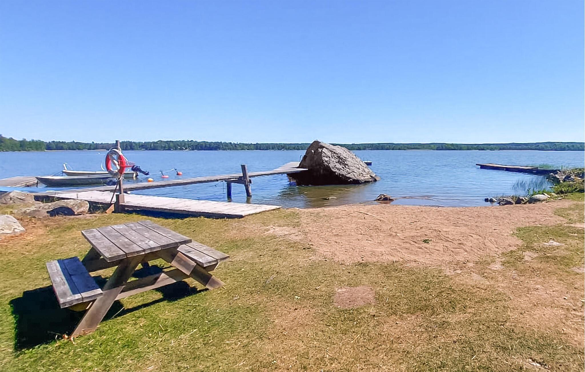 Selve ferieboligen er praktisk indrettet. En brændeovn skaber en hyggelig atmosfære på kølige aftener, mens I slutter dagen af ??i den hyggelige hjørnesofa. Tag en sejltur på Hjälmaren. I har jeres egen robåd til rådighed for at udforske søen og måske endda fange en fisk eller to.