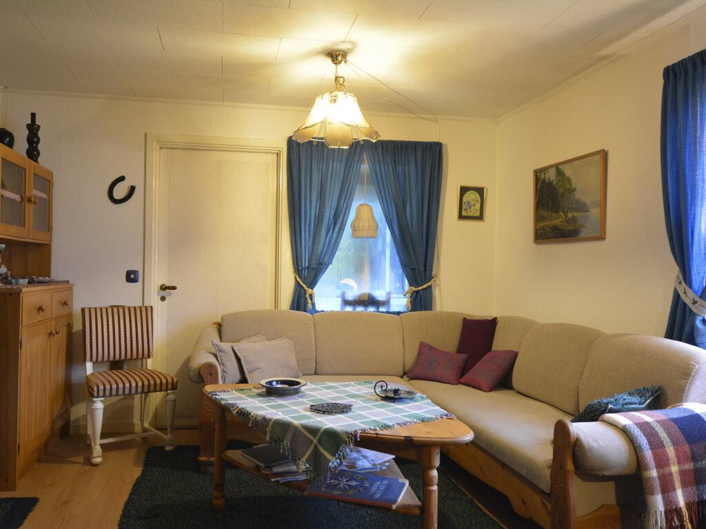 Feriehuset er ca. 60 m2 stort og her er der 2 soveværelser, det ene med en dobbeltseng og det andet med en etageseng til 2 personer. Der er en stue med en sofagruppe, TV med de gratis svenske kanaler og et spisebord. Køkkenet ligger lige ved indgangen, og det er ikke ret stort, men her er, hvad der skal til for at lave mad. I kan enten spise i stuen eller i udestuen, der har store vinduer, så I kan nyde den skønne udsigt.