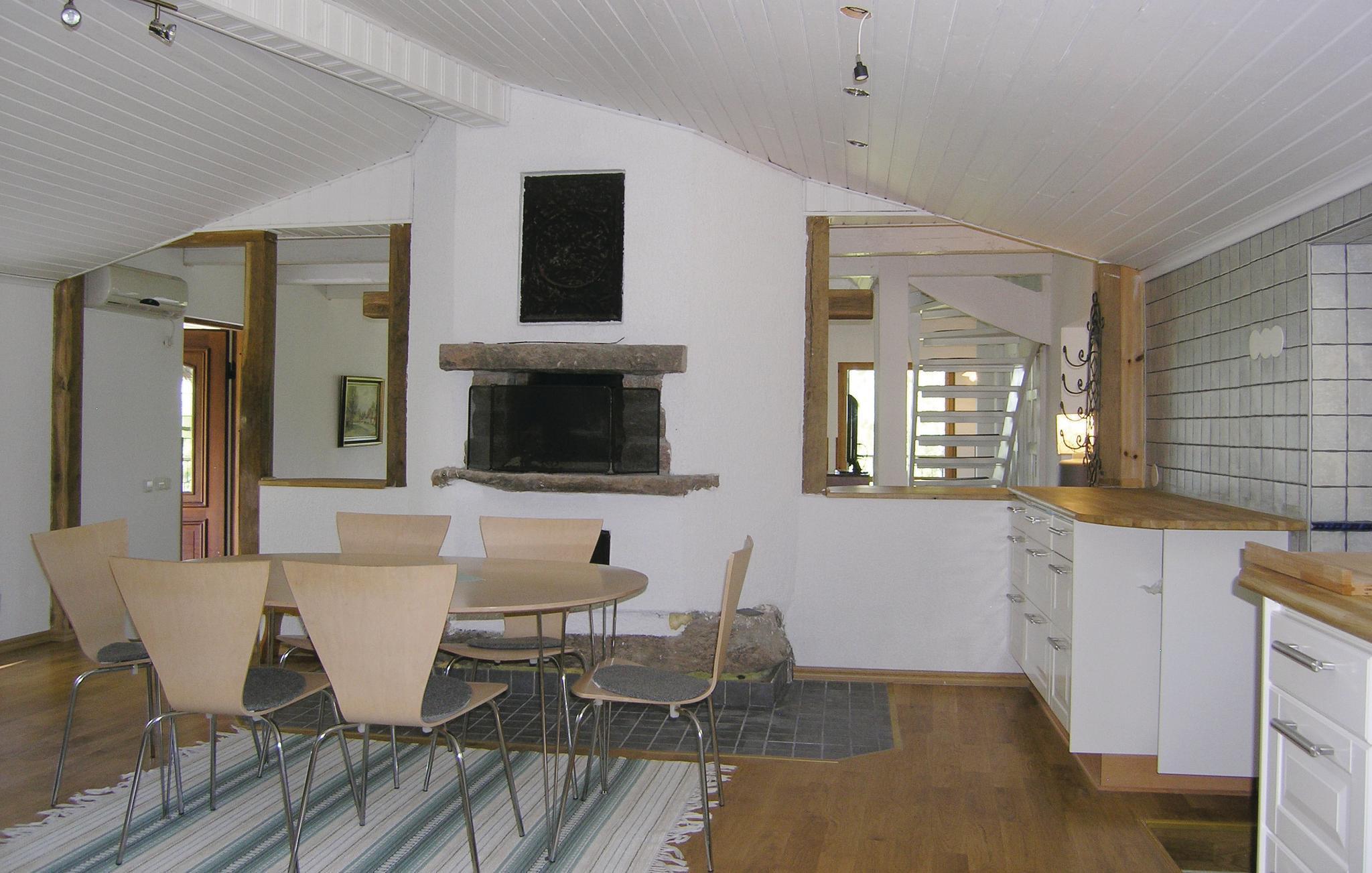 Et spændende og anderledes hus. To dejlige flisebadeværelser og tre forskellige brændeovne, her er der hygge og dejligt varmt. Der er to store overdækkede terrasser og en åben, så her er sol, så længe solen er på himlen.