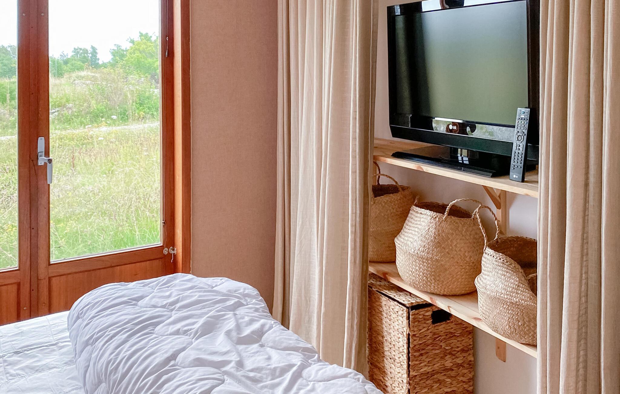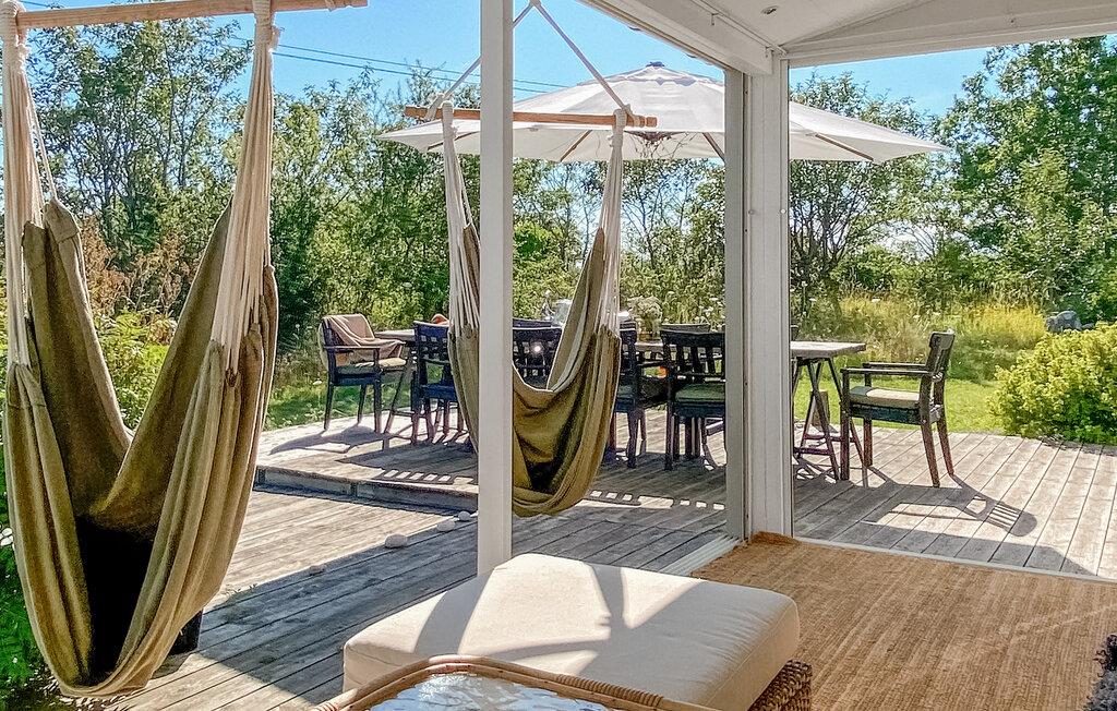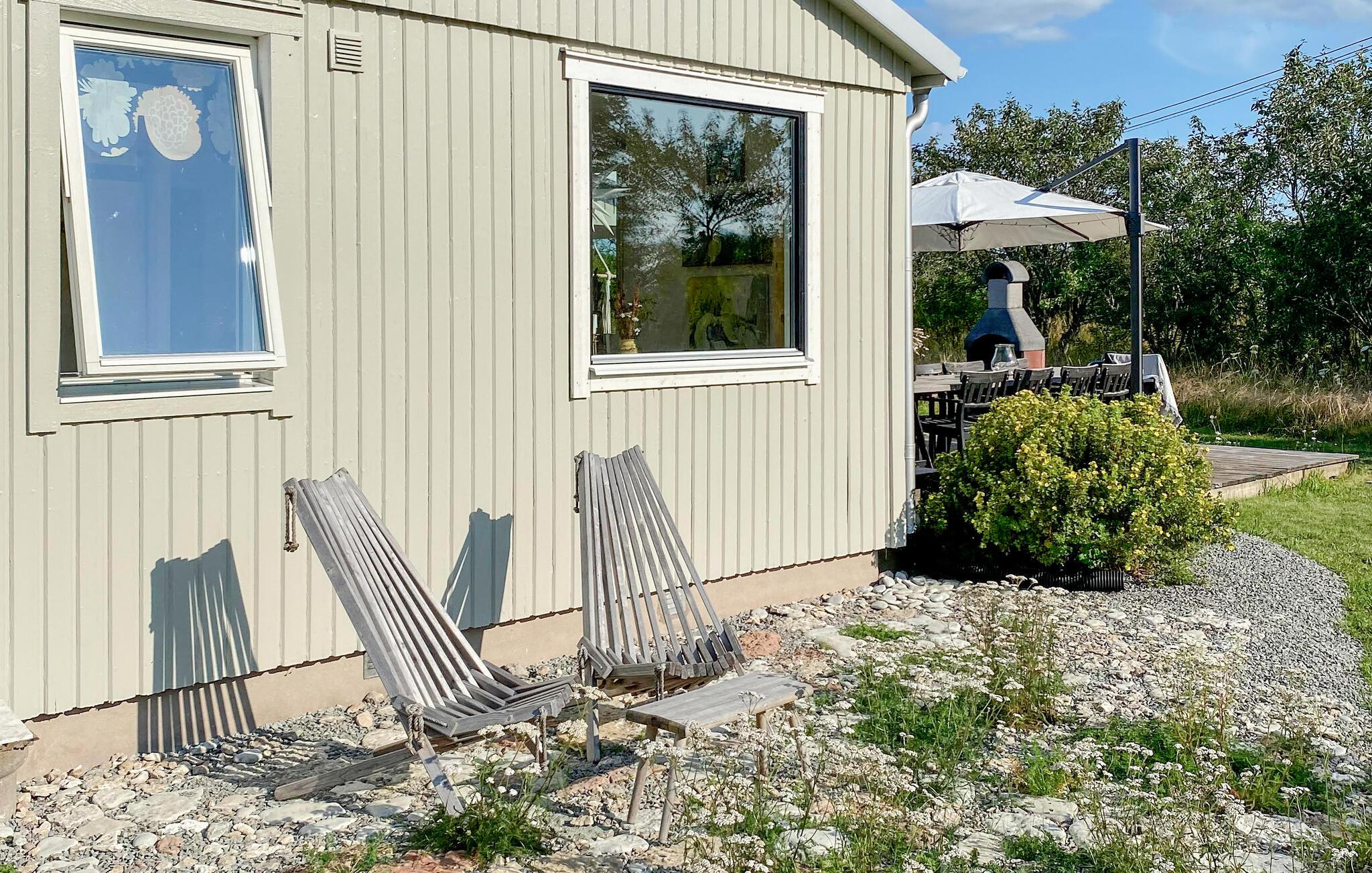 Dette lyse og indbydende feriehus i Köpingsvik er noget særligt med sin hjemlige og stilfulde indretning. Den åbne opholdsstue lægger op til at tilbringe tid sammen, mens det veludstyrede køkken er ideelt til at tilberede lækre måltider. Den store træterrasse giver jer masser af plads til at nyde solen, læse en god bog eller afslutte dagen med et glas vin. Husets rolige beliggenhed gør det til det perfekte tilflugtssted for familien eller venner.