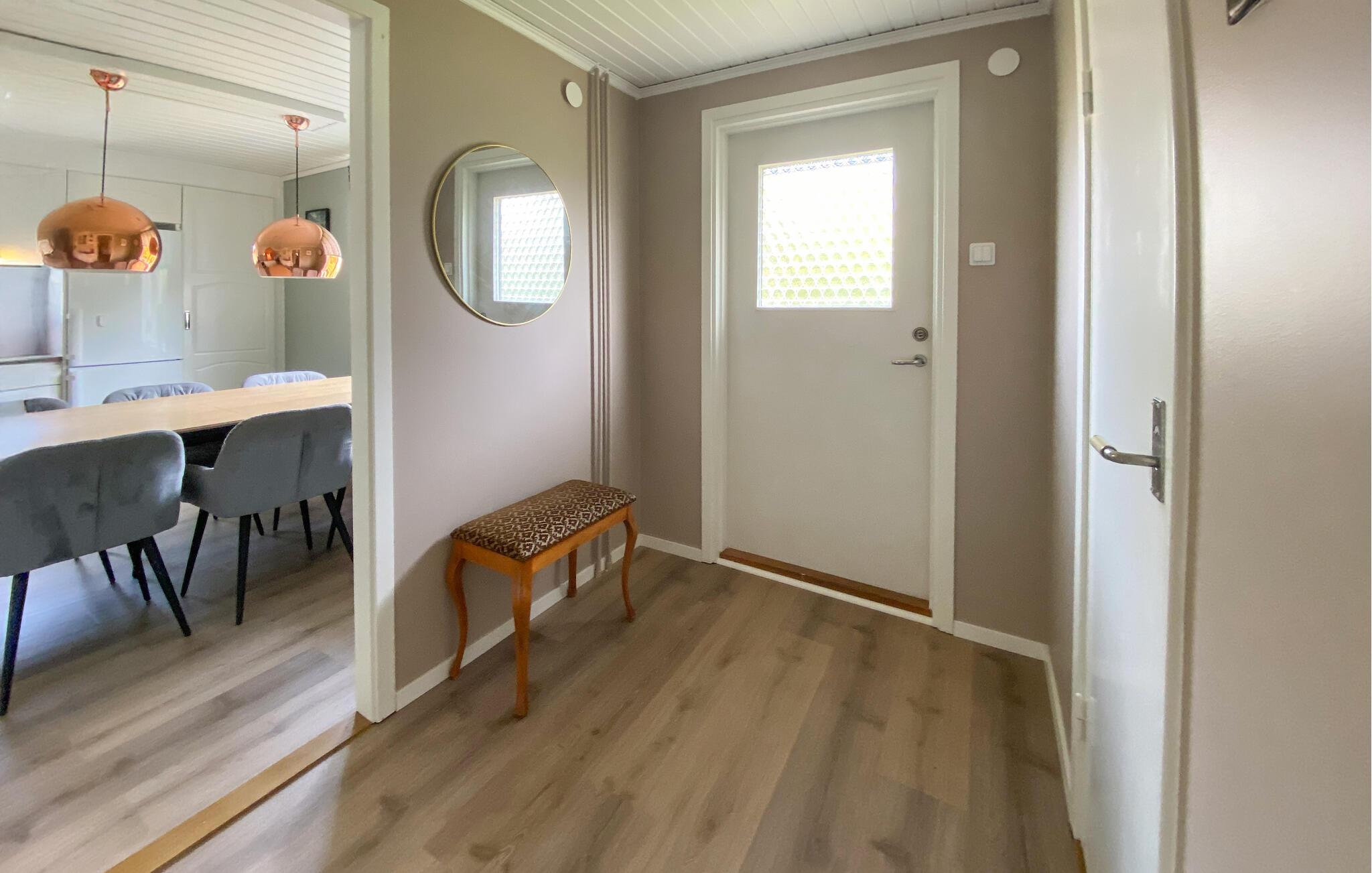 Omgivet af en rummelig have byder dette hyggelige og smagfulde feriehus jer velkommen. Glæd jer til hyggelige madlavningsaftener i det rummelige køkken, brug spisebordet til muntre spilleaftener eller sæt jer til gode samtaler i den hyggelige stue.