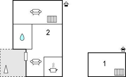 Soveværelse (nr. 1) - 2 Sovepladser. (Enkeltseng(e)). 2 Sovepladser. (Dobbeltseng(e)).