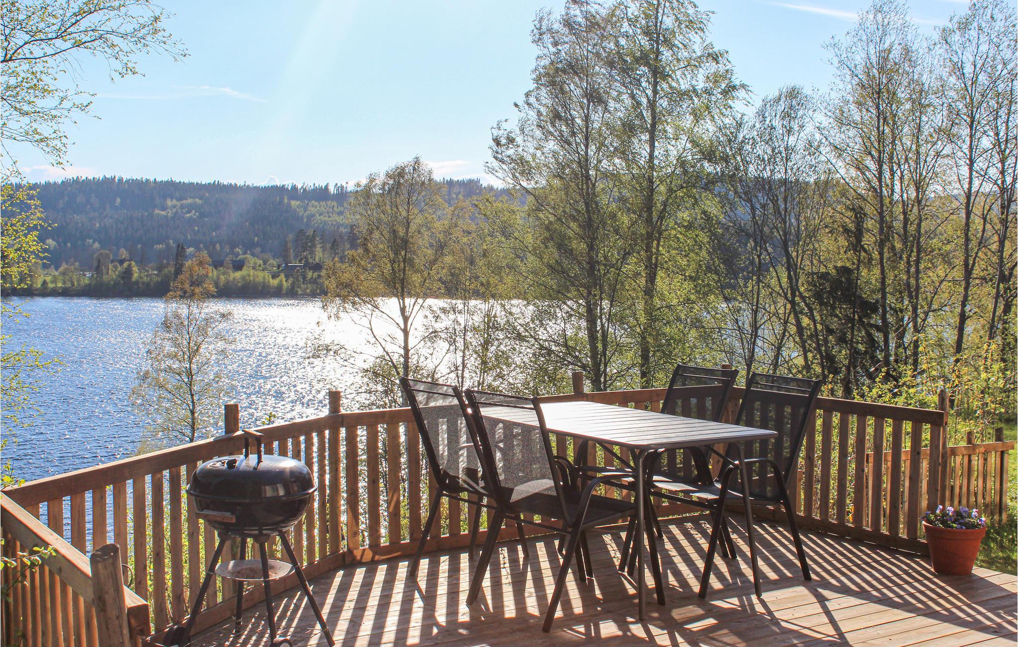 Gå ud og udforsk den ekspansive ejendom. Den rummelige terrasse byder også på en vidunderlig udsigt over søen. Brug havemøblerne til at spise morgenmad i den friske luft eller slap af i liggestolene. Der er bålplads og opholdsområde lige ved vandet. En båd er tilgængelig, så I kan udforske søen på egen hånd.