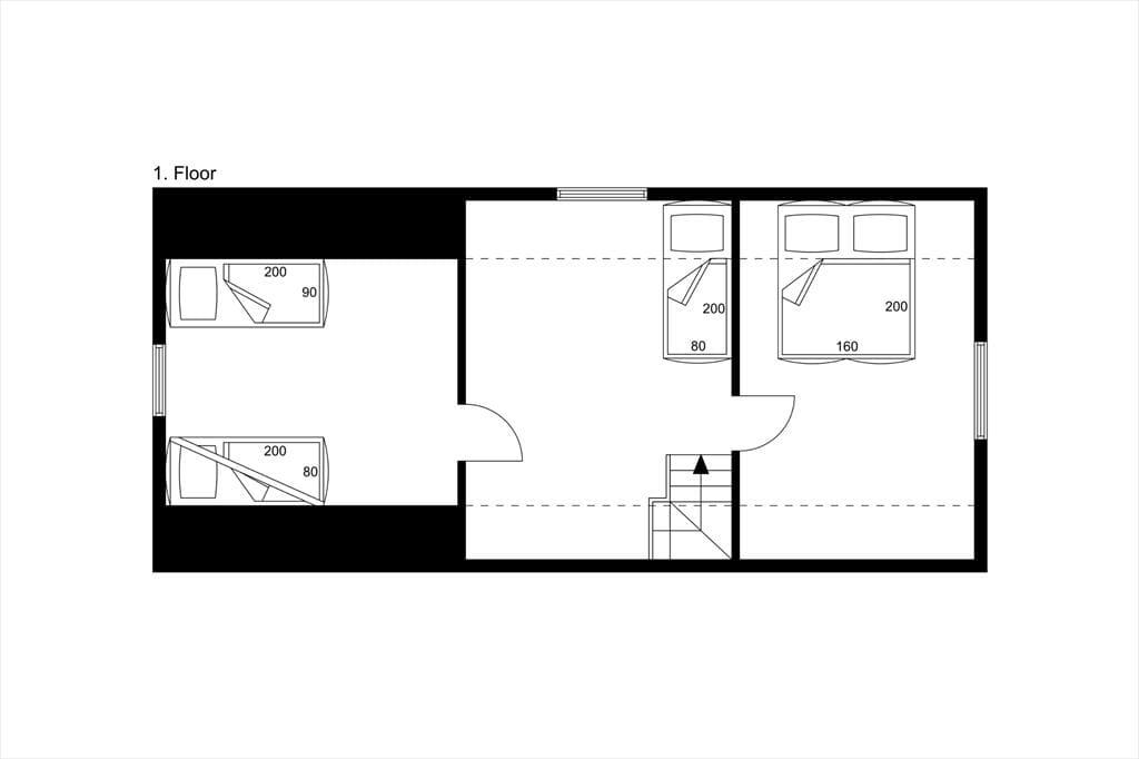 Feriehuset er på 100 m² fordelt på to etager og ligger på en ca. 800 m² stor naturgrund. Huset blev gennemgribende renoveret i 2013 og tilbyder sine gæster en hyggelig opholdsstue i stueetagen med brændeovn, TV med chromecast og en sovesofa. Køkkenet med integreret spiseplads og fire stole, er udstyret med gammeldags brændekomfur, elektrisk ovn, glaskeramiske kogeplader, køleskab med fryser, en stor separat fryser, mikroovn, kaffemaskine, elkedel og opvaskemaskine. I stueetagen finder man desuden et badeværelse med bruser, håndvask, toilet og vaskemaskine. På første sal, i åben forbindelse med trappen, er et lille opholdsområde med en sofa og en enkeltseng. På hver side af dette rum er et værelse. I det ene værelse er en dobbeltseng, på det andet værelse er en køjeseng og en enkeltseng.