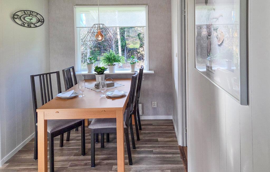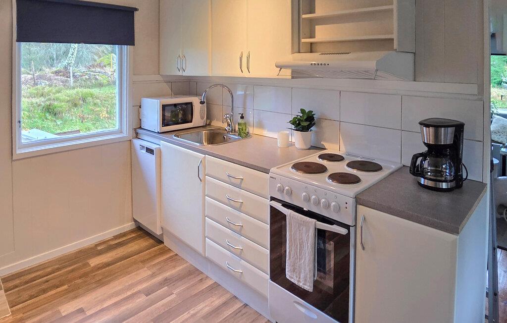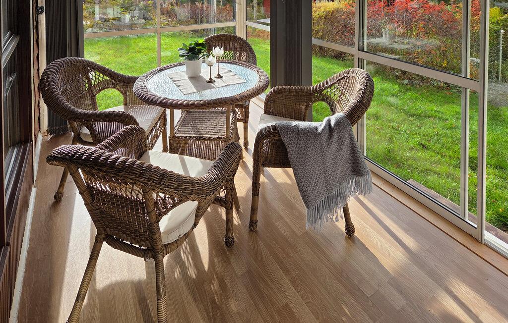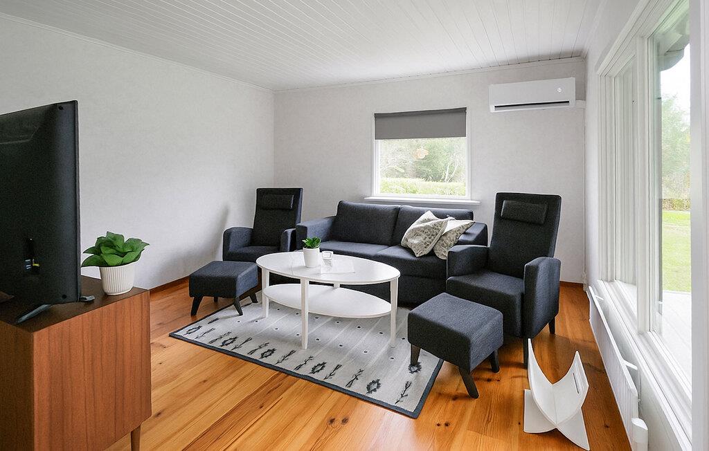 Oplev en afslappende ferie i dette charmerende træhus omgivet af naturen. Jeres hyggelige feriehus ligger for enden af en lille skovsti. Her finder I fuldstændig ro, omgivet af frodig natur, hvor hjorte, harer eller endda elge kan vandre forbi. Huset byder jer velkommen med lyse, flotte møbler og komfortable faciliteter. Stuen med sine komfortable lænestole og sofa tilbyder plads til afslappende aftener med samtale, musik eller en god bog. I det praktiske køkken kan I tilberede jeres yndlingsretter på ingen tid, og ved spisebordet kan I nyde måltider sammen i en behagelig atmosfære. Store vinduer oversvømmer rummet med naturligt lys, hvilket skaber en lys og luftig fornemmelse. Tilbring solrige timer på terrassen med udsigt over den grønne have. Nyd jeres morgenkaffe i den friske luft, slap af på sofaen i udestuen om eftermiddagen, eller se lyset spille gennem træerne om aftenen. Den store have inviterer jer til blot at nyde freden og roen eller holde en picnic på græsset. Flere søer til svømning ligger kun en kort køretur væk. Besøg Tåkern naturreservat eller ruinerne af Alvastra Kloster og Rök-runestenen. Udforsk Ombergs naturlige omgivelser, eller tag en dagstur til Linköping med dets flymuseum. Astrid Lindgrens Verden i Vimmerby og Kolmården Zoo er også et besøg værd for familier.