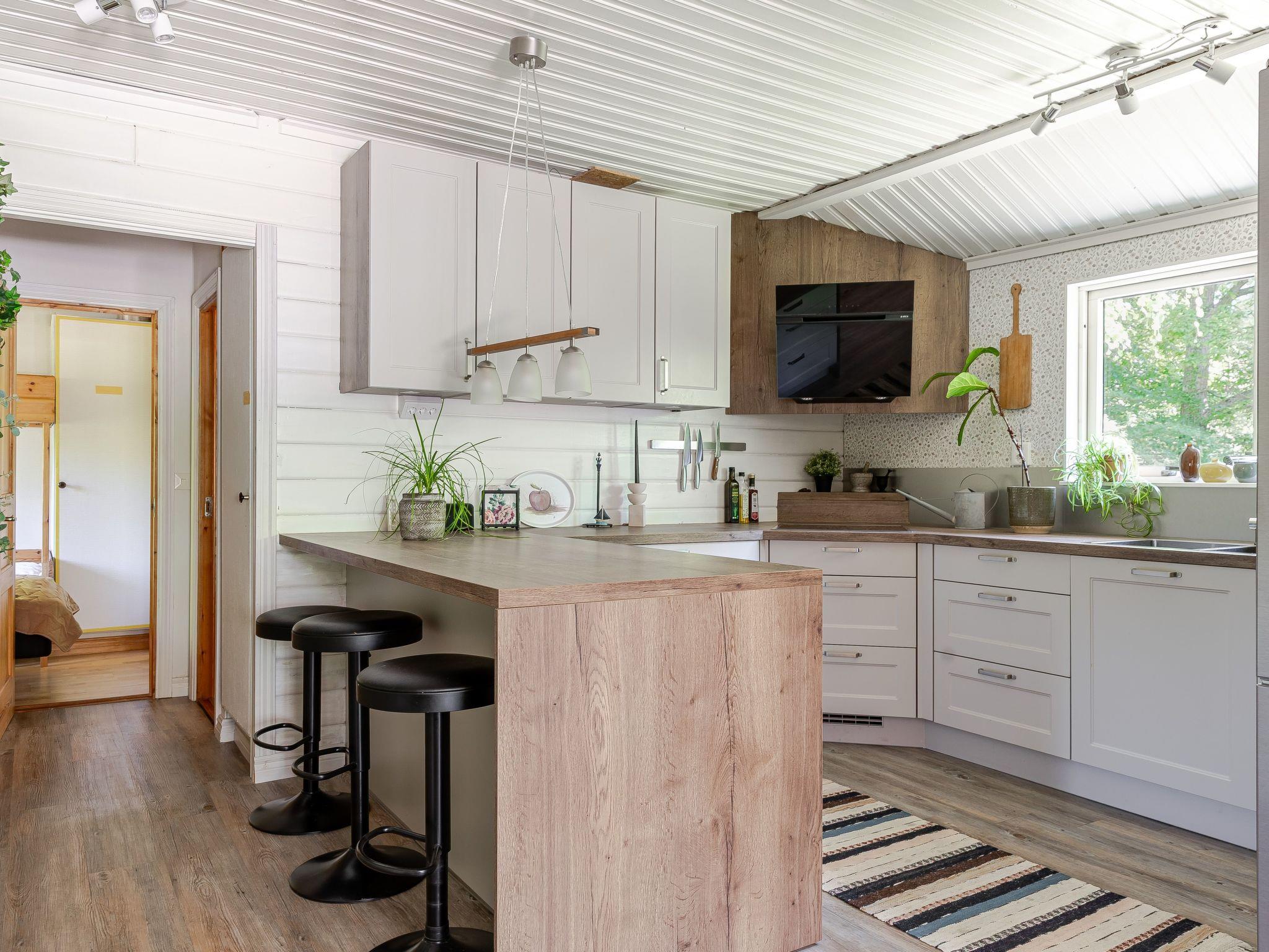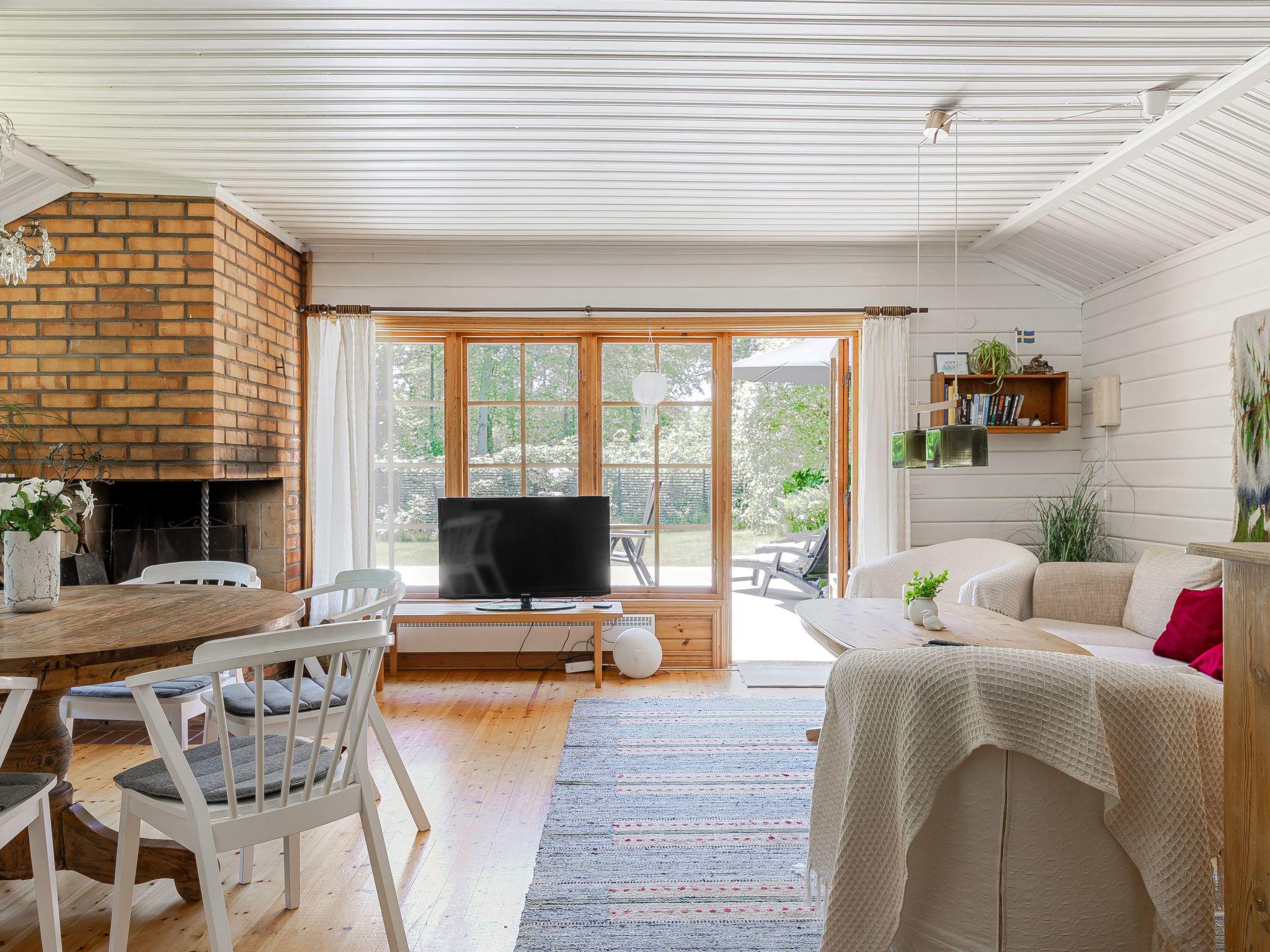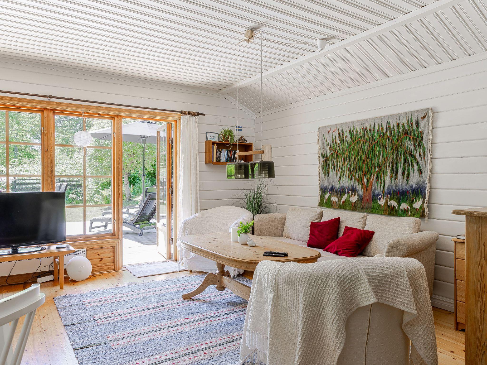 "Väbynäs", 4-room house 65 m2. Living room with TV. Exit to the garden, to the veranda. 1 room with 1 bed. 1 room with 2 beds. 1 room with 1 double bed. 1 double bedroom with 1 double bed. Open kitchen (dishwasher, 4 induction hot plates, toaster, kettle, microwave, freezer, electric coffee machine). Shower/WC. Heating. Wooden floors. Terrace furniture, barbecue (portable). Facilities: Internet (WiFi). Please note: one double bedroom is outside the apartment. Non-smoking house. No internal connecting door between the separated properties.