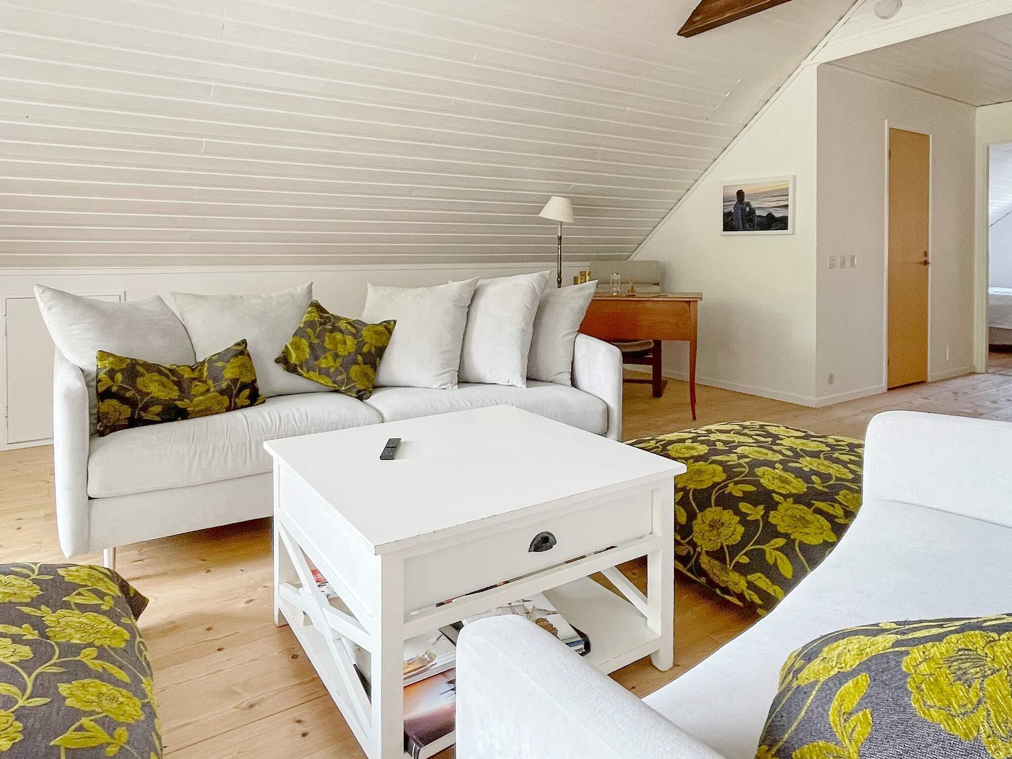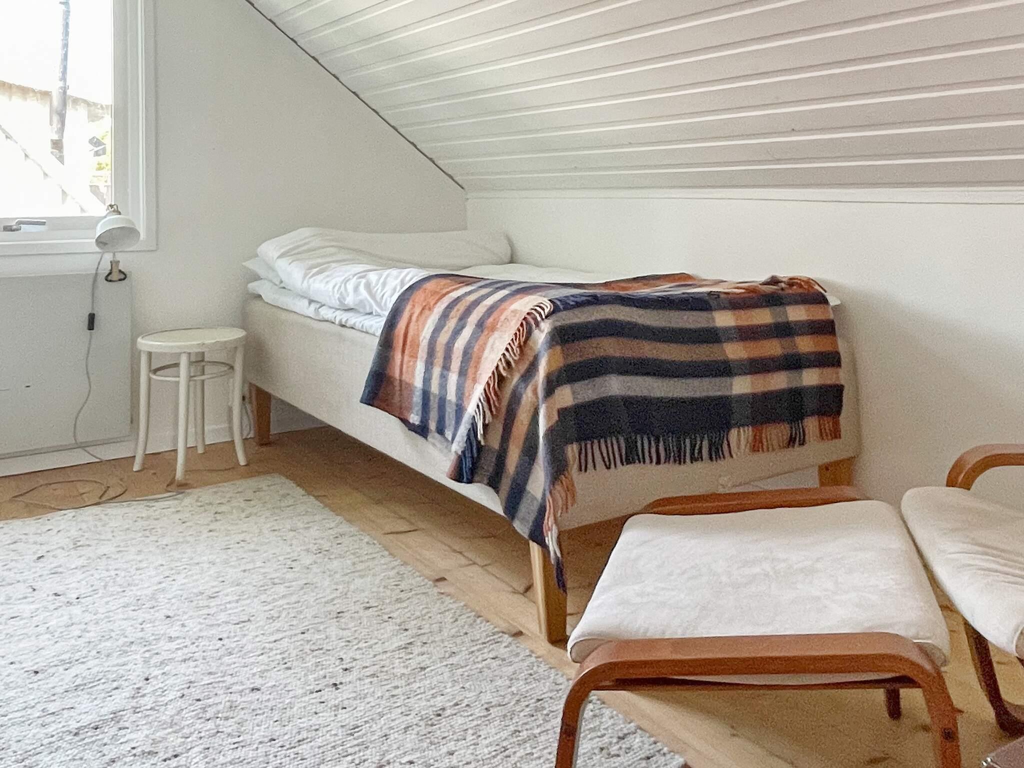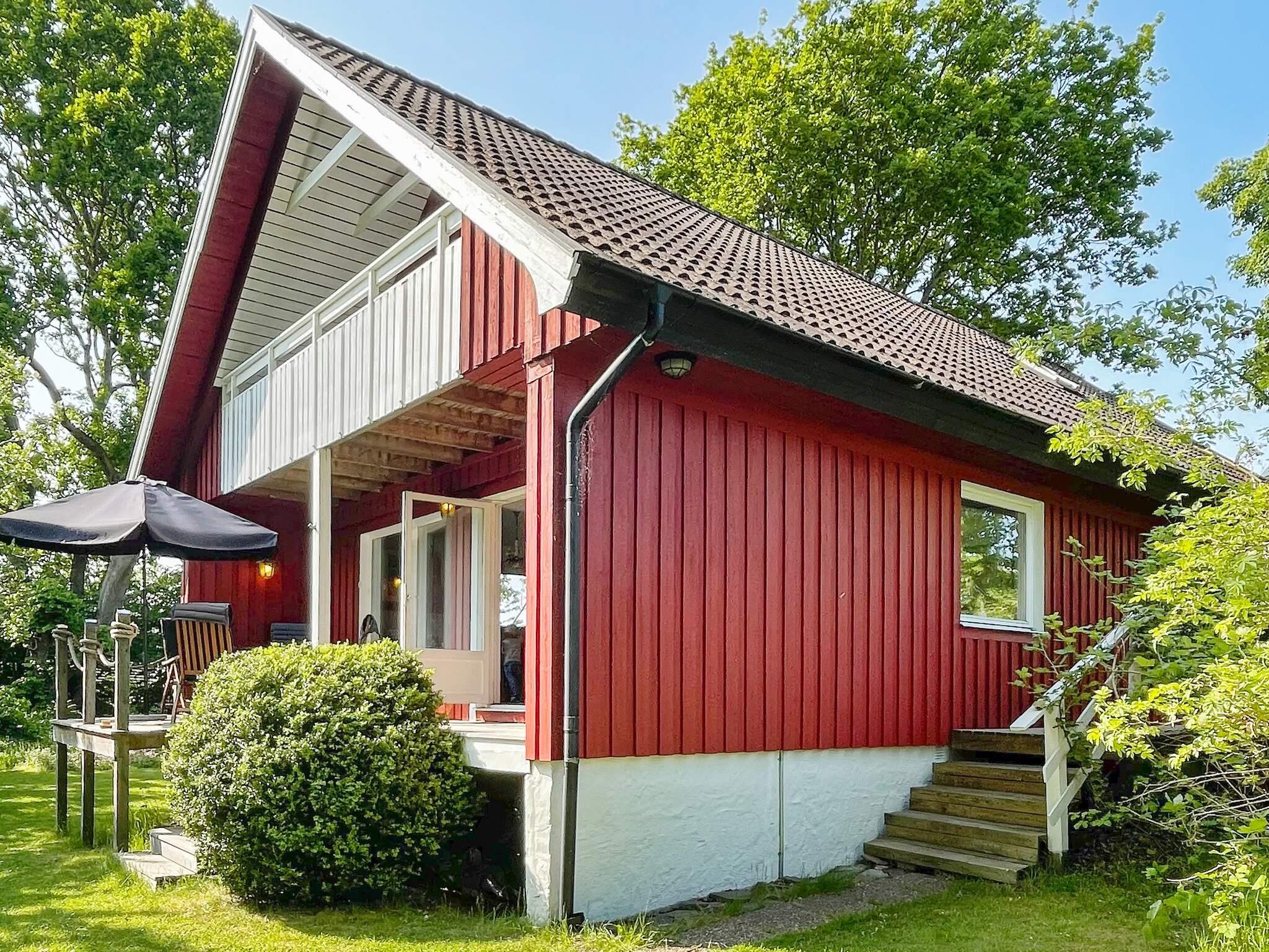 Huset ligger på en lummig inhägnad trädgård endast 70 meter från havet och ni har en fin utsikt ifrån både altan och balkong. Tomten består både av gräsmatta för lek och spel samt naturtomt med träd och bärbuskar. Huset är i två plan där nedervåningen består av ljust kök med matplats, två sovrum varav ett har 180 cm bred dubbelsäng och det andra familjesäng med 120 cm bred säng (1–2 pers) samt 80 cm bred överbädd. Badrum med badkar och dusch samt tvättstuga med tvättmaskin. En trappa upp finns rymligt vardagsrum med soffgrupp och TV samt utgång till balkong med fin utsikt. Två sovrum varav ett med enkelsäng och ett med 180 cm bred dubbelsäng samt gäst toalett med WC.