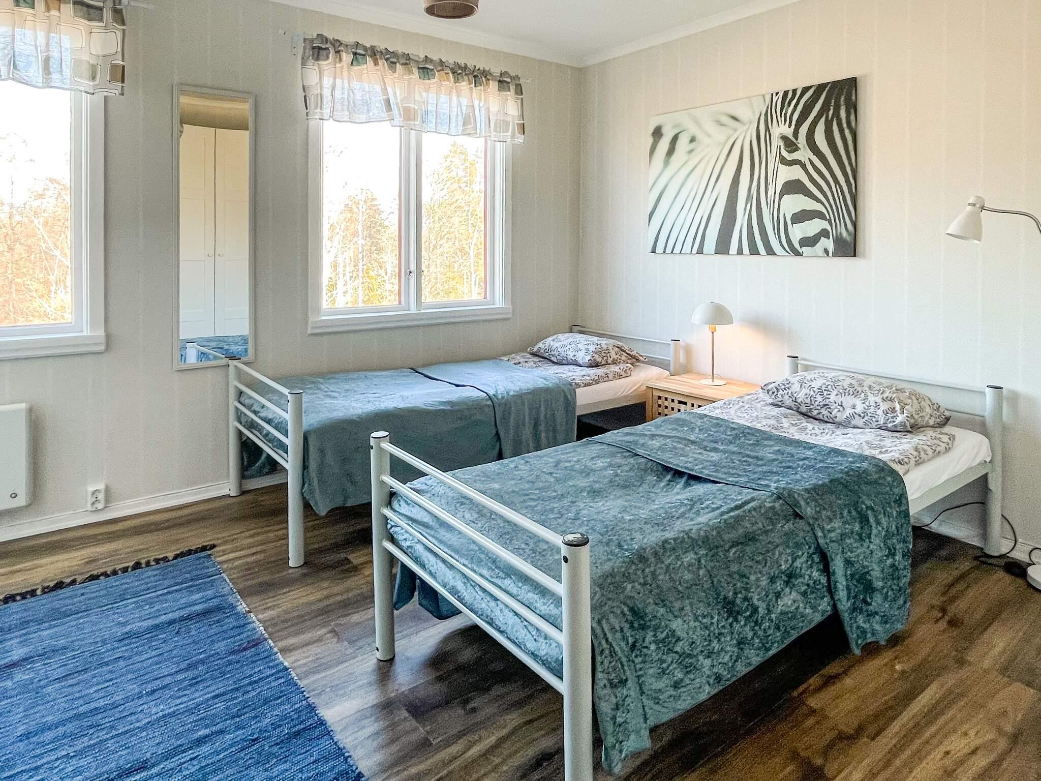 Ni sover i tre sovrum. Det ena sovrummet med två enkelsängar finns på entréplan. De andra två sovrummen finns en trappa upp. Det ena med en dubbelsäng, det andra med två enkelsängar. Badrummet med dusch finns på övervåningen.