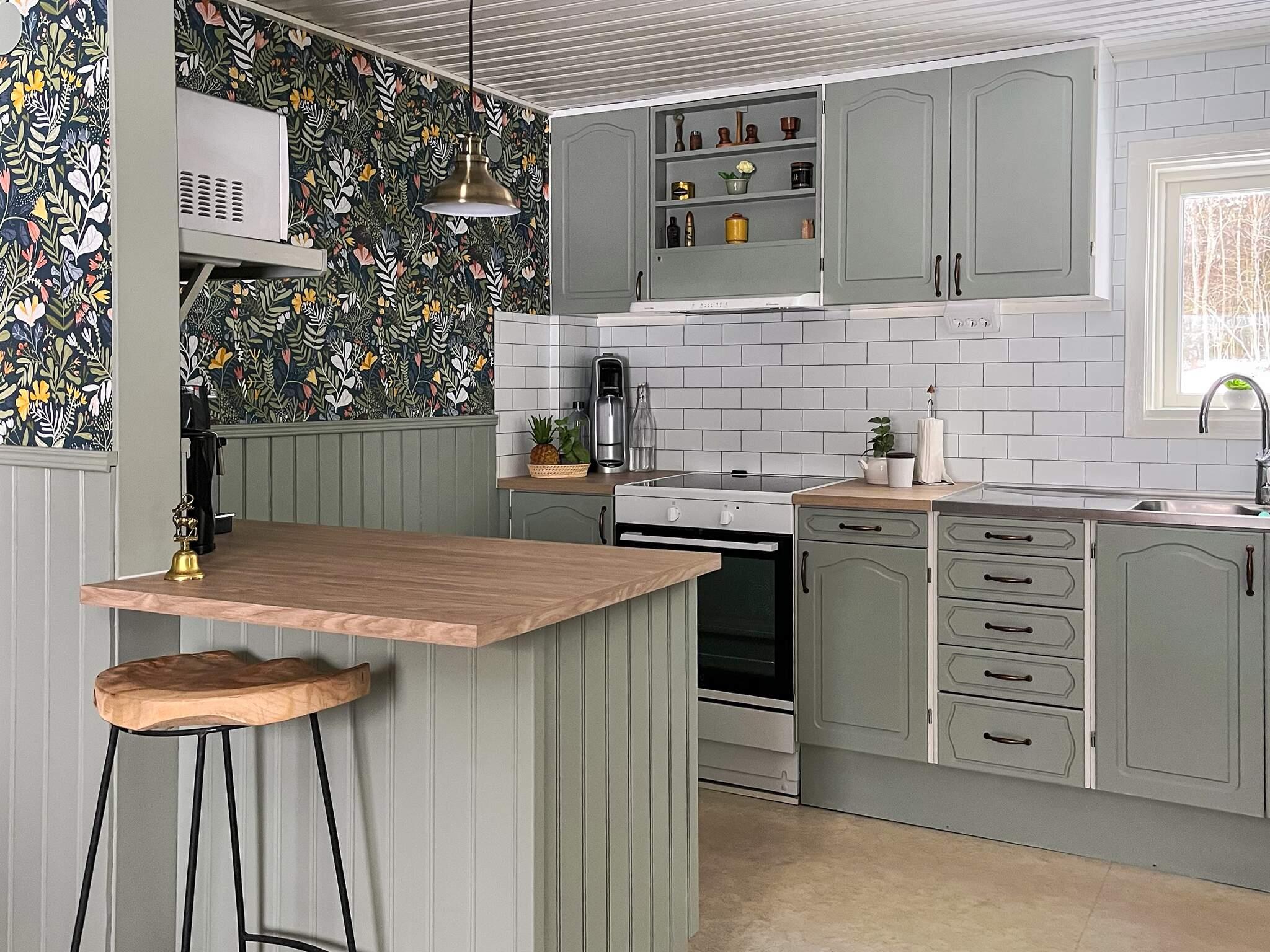 Det nyrenoverade köket är fullt utrustat med spis, ugn, kyl, frys, mikro och kaffebryggare – allt du behöver för att laga goda måltider tillsammans. Här finns även badrum med dusch, tvättställ och WC, samt en praktisk tvättstuga, här finns även utgången till husets generösa altan med tak.