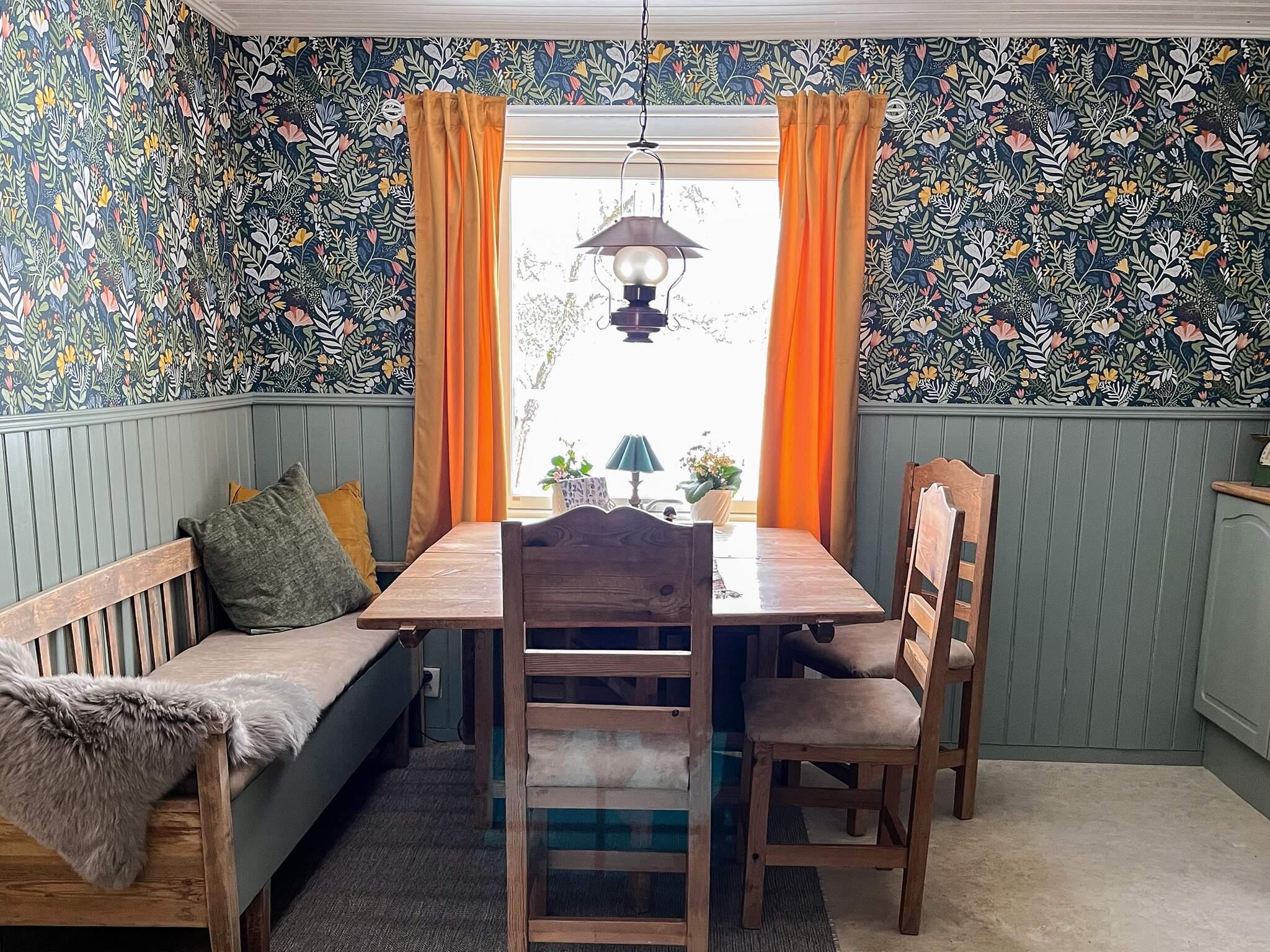 När du svänger in så möts du av en inbjudande grusgång som leder till det hemtrevliga boendet som består av två plan. På nedervåningen finns ett mysigt vardagsrum med bekväma fåtöljer och en kamin (ej i bruk), perfekt för avkopplande kvällar.