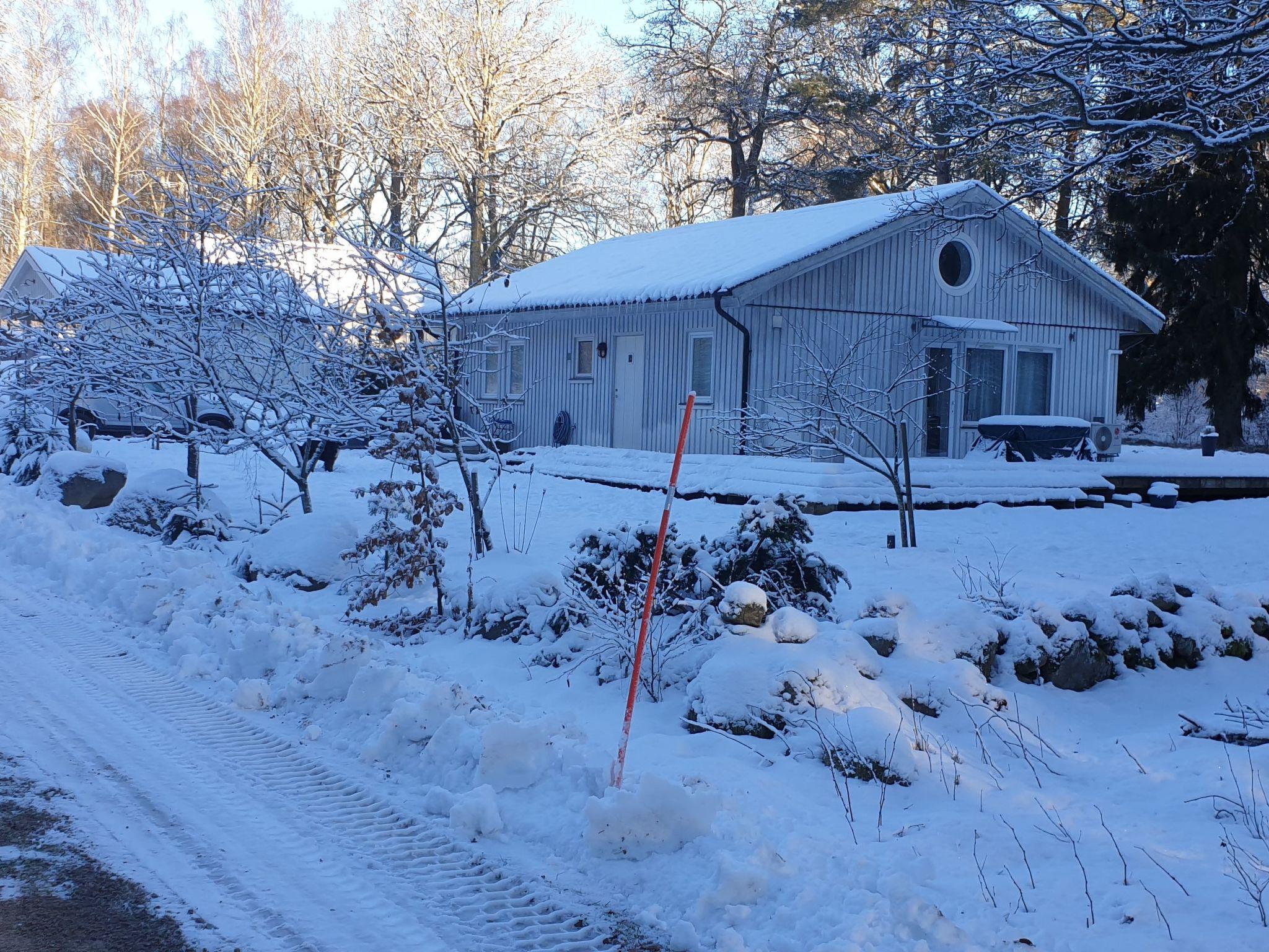 The house's exterior consists of a garden and woods. The neighboring houses are about 100 meters away. The area is considered a luxury area. People live in the area year-round and only for the summer.
