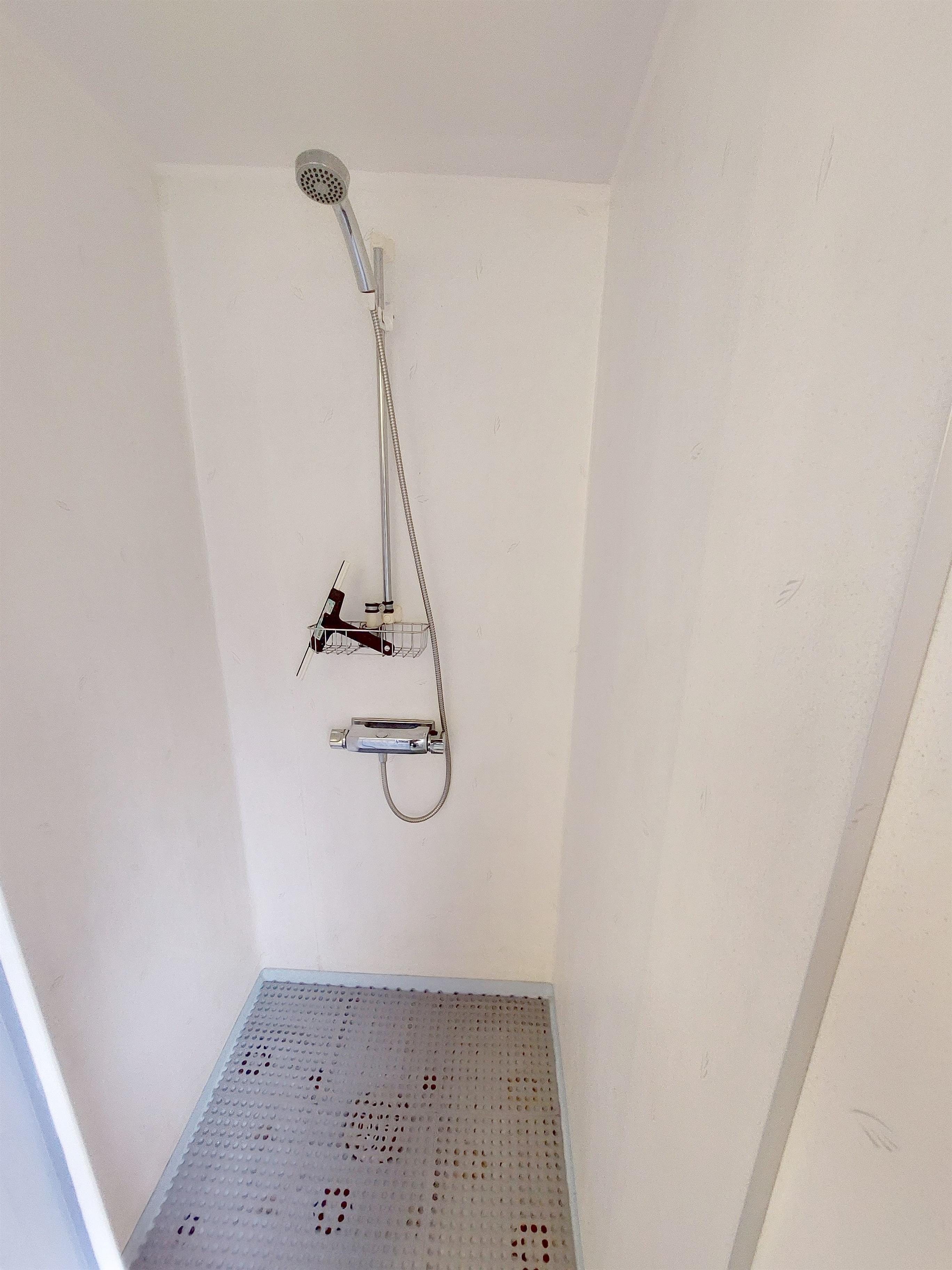 Das Bad bietet 1 Handwaschbecken und 1 Dusche (jeweils heißes und kaltes Wasser). 1 Toilette. 1 Wandspiegelschrank. Flüssig-Seife im Spender. Mehrere Wand-/Türhaken für Handtücher bzw. Klamotten. Mülleimer, WC-Bürste. 2 Tritthocker in verschiedenen Höhen für Kinder (z.B. vor dem Waschbecken). 1 Fenster mit Milchglas und Jalousie und 1 Fliegengitter. 1 Leuchte im Wandspiegelschrank. Wäscheständer (dieser kann auch gerne auf der Terrasse verwendet werden). Elektrische Heizung. Im Badezimmer gibt es keine 230 Volt-Steckdose (wie in Schweden üblich). PVC-Boden ('Plastmatta').