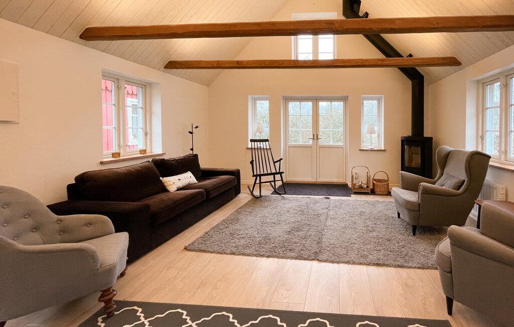 Tag en pause fra hverdagen og rejs til Österlen, hvor der venter jer et allelunde skønt ophold i dette indbydende træhus. Med sine mange kvadratmeter og fine indretning i to bygninger er huset særdeles velegnet til en ferie med en større familie eller måske en vennefamilie, uden I behøver sidde på skødet af hinanden. Interiøret fremtræder både rustikt, elegant og stilsikkert med højt til loftet, træbjælker og gode møbler, der får skuldrene til at sænke sig og gør det nemt at slappe af her. På de køligere dage kan I tænde op i brændeovnen og nyde dens varme knitren, mens I kræser om livretterne i køkkenet og nyder måltiderne ved det lange spisebord. Efter aftensmaden kan I hive brætspillene frem eller trække over i den bløde sofa med snacks og en god film på tv'et, mens I lægger planer for de kommende dage.