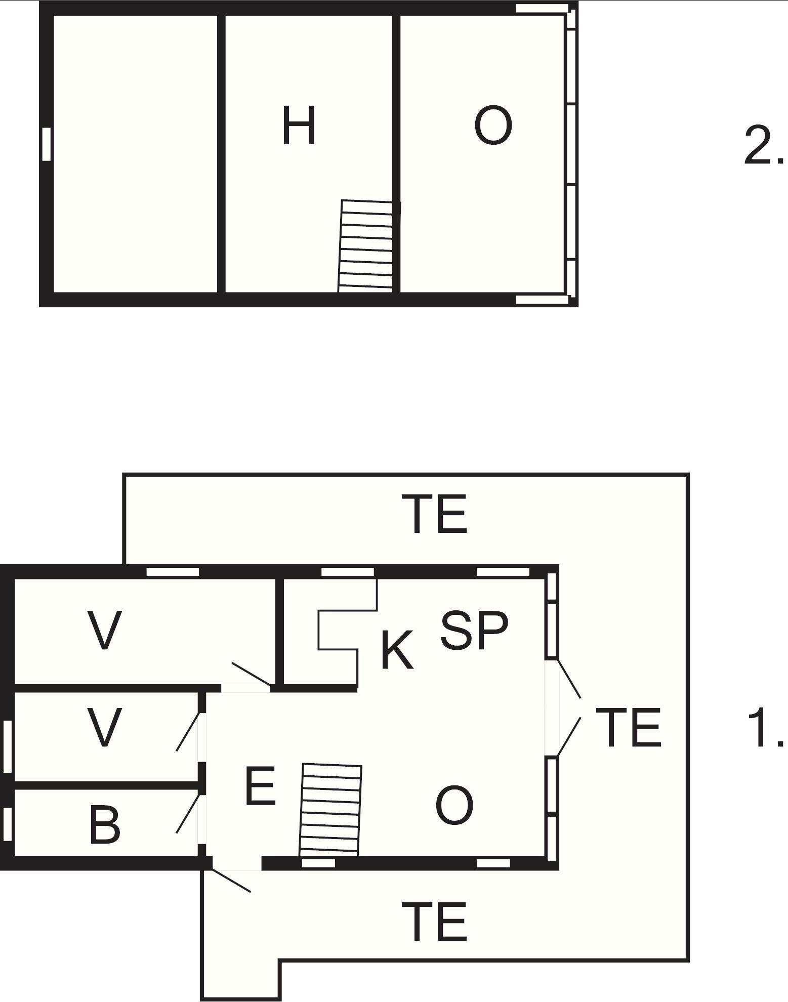 På övervåningen finns ett sovrum med två enkelbäddar samt ett öppet sovrum/sovloft/vardagsrum med en bäddsoffa som bäddas upp till en 140cm bred bädd.