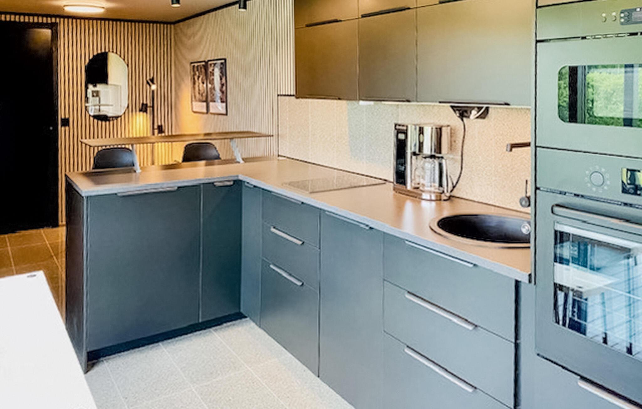 Bliv inspireret af det moderne og komfortable interiør i dette omhyggeligt renoverede containerhus, som lægger op til en idyllisk pause med en smuk udsigt over fjorden. Fremstil lækre retter i det åbne køkken, og slap af efter en lang dag udendørs med en god bog eller et brætspil i den behagelige sofa.