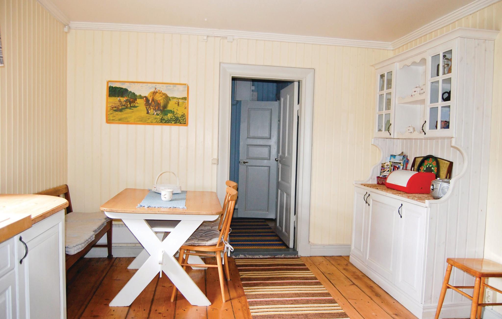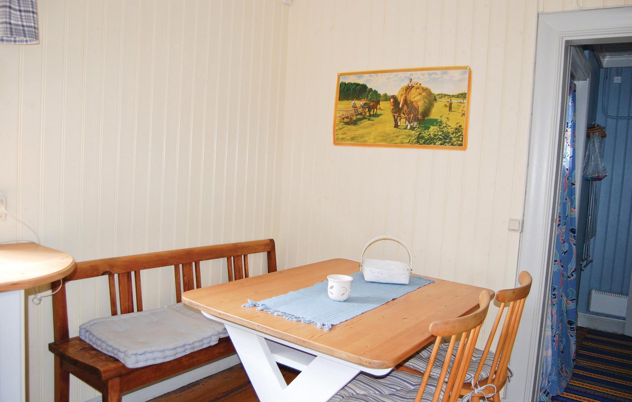 Her bor I meget idyllisk midt i den smukke svenske natur. Slap af i den hyggelige opholdsstue med en knitrende ild i pejsen, eller vær sammen om at tilberede feriens måltider i det hyggelige og funktionelle køkken, hvor der også er spiseplads.