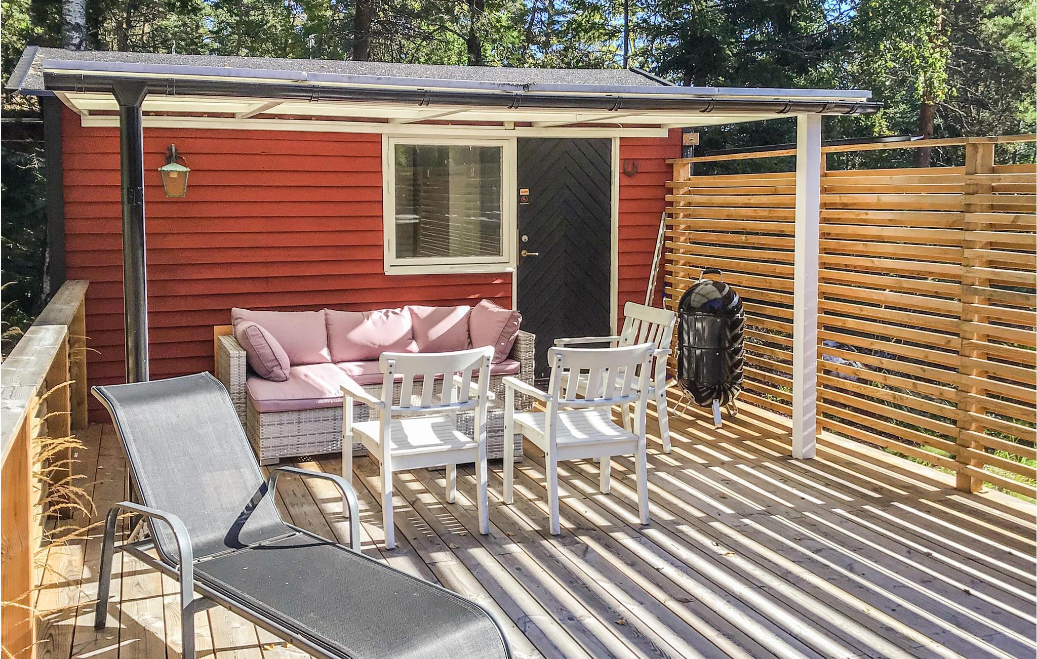 Glæd jer til en afslappende ferie i naturen. Indkvarteringen består af et hovedhus og to udhuse, hvilket gør det nemt at få privatliv for alle. Her er der gode forhold både til den store familie eller to familier. Indenfor finder I alt, hvad I behøver til en rolig ferie. Slap af på terrassen og grill sammen på de lyse svenske sommerdage.