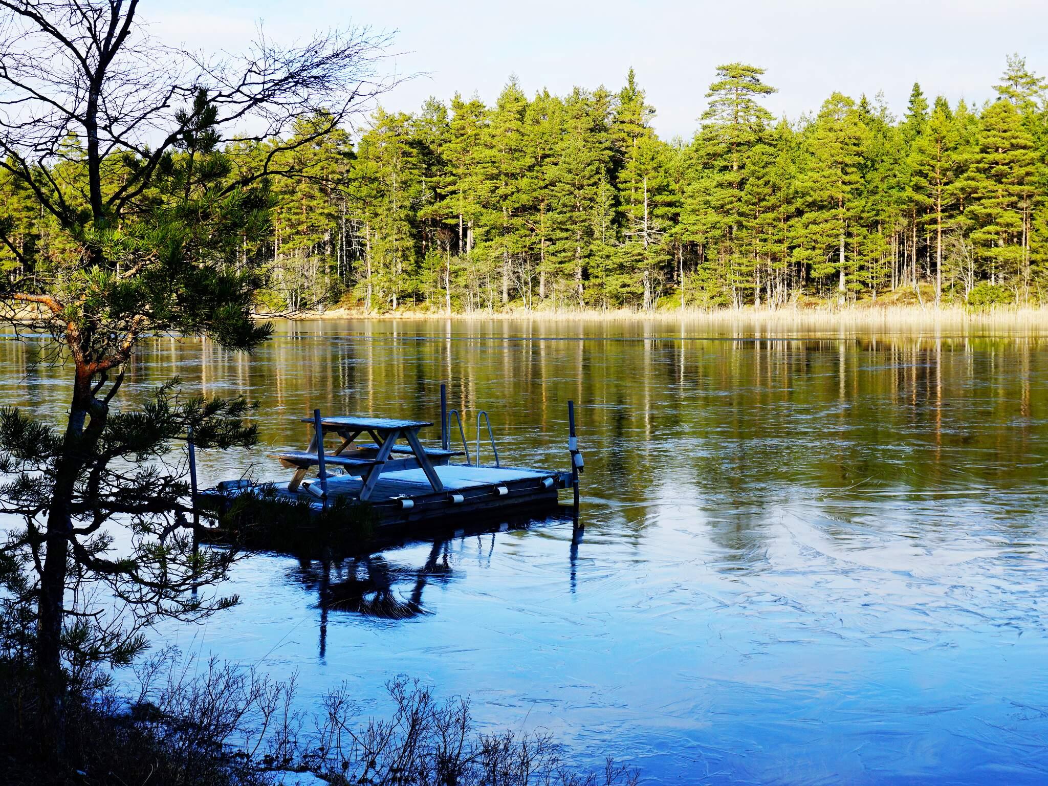 Stugan ligger trevligt i en skogssluttning som vetter ner mot sjön, via en av stugans altaner når ni stugans entré och vidare in i en välkomnande hall. I det öppna köket finns spis, kyl/frys, mikro samt kaffebryggare, i vardagsrummet finns matsalsmöbel, TV, en värmande braskamin och bäddsoffa. Stugan har två sovrum, varav ett med dubbelsäng och ett med våningssäng där nedre sovplatsen är 120 cm bred. Badrummet har WC, tvättställ samt dusch. Stugan har två altanområden med sommarmöbler och elgrill, en altan för att möta morgonsolen och en för kvällsmys som gjort för trevliga stunder och samtal då ni går igenom dagens händelser eller planerar för nya. Stugan har egen brygga vid sjön som ni kan njuta av för sol och bad.
