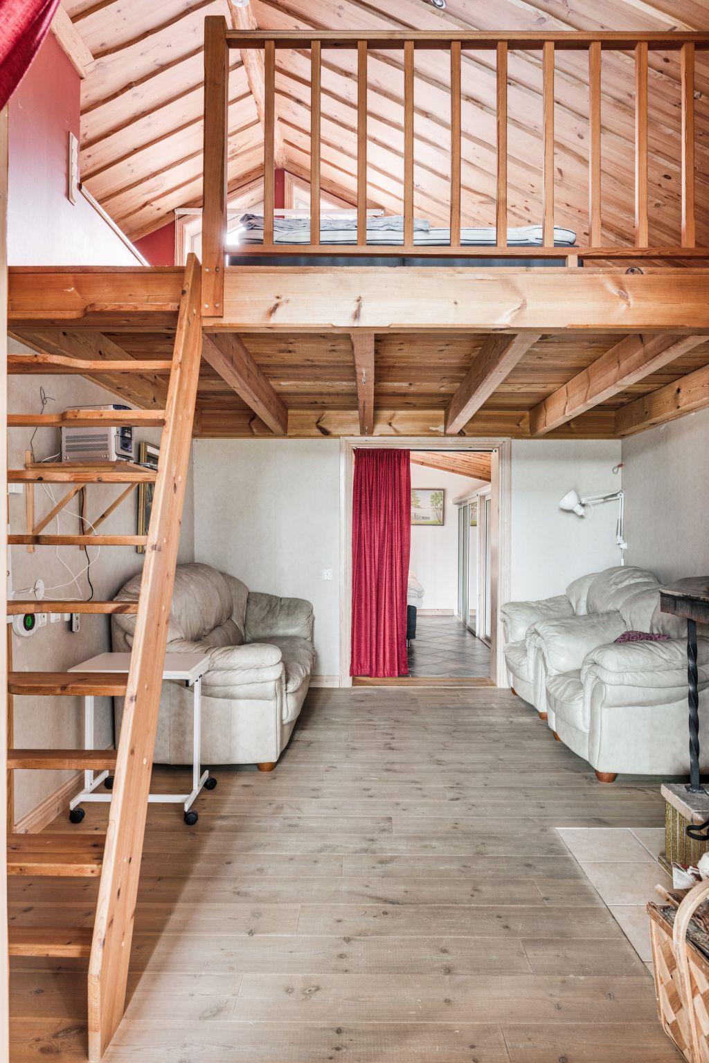 "Nedre Gärdsjö", 4-room house 116 m2 on 3 levels. Bright, with sloping ceilings, comfortable and tasteful furnishings: living room, window onto the courtyard. 1 open room with curtain with 1 french bed (160 cm, length 200 cm). Large, open kitchen 33 m2 (oven, dishwasher, 4 induction hot plates, microwave, freezer, electric coffee machine, cooking island) with dining table, satellite TV and digital TV (flat screen), radio and hi-fi system. Exit to the terrace. Sep. WC. Heating, underfloor heating. On the lower ground floor: 1 room with 1 double bed (160 cm, length 200 cm). Bath/shower, sep. WC, Sauna. Heating. Upper floor: (steep stair) open sleeping alcove with sloping ceilings, ceiling height 90 - 200 cm with 1 french bed (160 cm, length 200 cm). Wooden floors. Large terrace 82 m2, lawn 300 m2. Terrace furniture, barbecue, deck chairs (6), sitting area. Very beautiful view of the lake and the forest. Facilities: washing machine, sauna. Internet (WiFi, free). Please note: non-smoking house. Freezer approx. 200 l. Instead of an enclosed bedroom, some sleeping areas are located in an open-plan area (gallery, alcove, etc.).