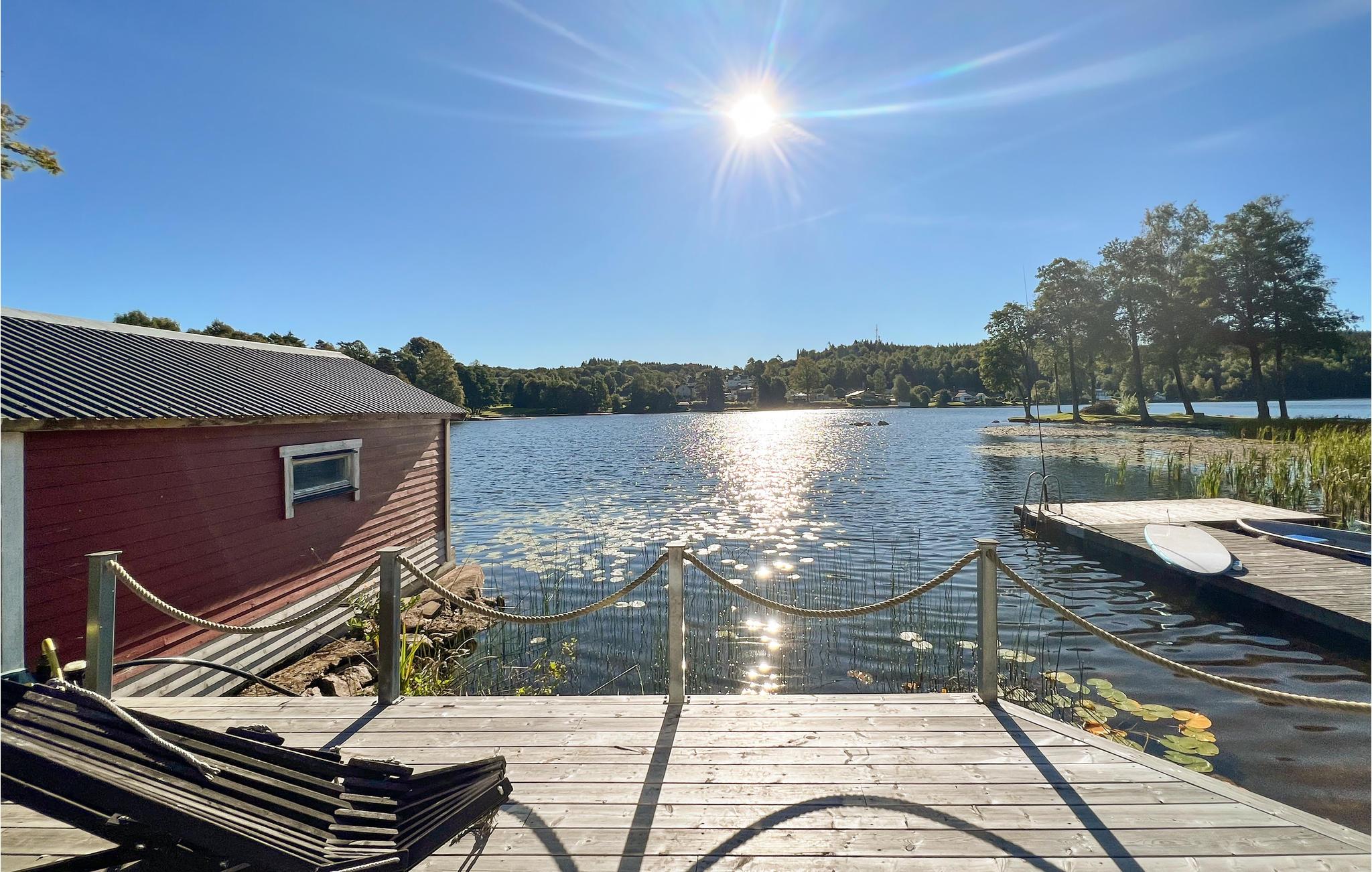 Tag et par skridt nedad, og I vil befinde jer på søens mole. Her kan I enten hoppe i søen og køle ned på en varm sommerdag eller kaste fiskesnøren ud. Der er også en båd til rådighed, så I kan udforske søen og finde gode fiskepladser. I kan også udforske det omkringliggende område og opleve naturen, skovene og søerne på vandreture og cykelture. En tur til Borås kan også stå på dagsordenen, jeres børn vil elske at besøge dyreparken, klatreparken eller det spændende Navet Science Centre.