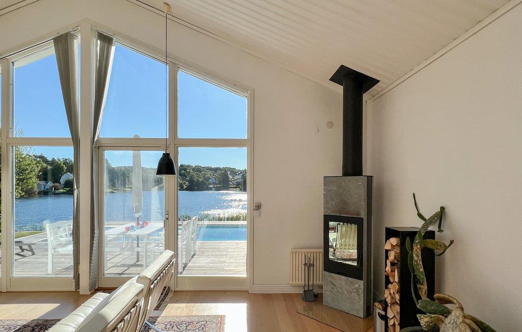 Velkommen til dette fantastiske hus med udsigt over søen. Det rummelige hus er den ideelle bolig, hvis I ønsker en pause fra jeres hektiske hverdag. Tilbring en ubekymret tid med familie eller venner i denne indbydende feriebolig. Ud over stilfulde og komfortable møbler kan I også glæde jer til at nyde det naturlige lys i hele huset på grund af de store vinduer. Lav mad sammen i det moderne køkken, eller træk jer tilbage og slap af i værelserne, der hver især har deres egen stil.