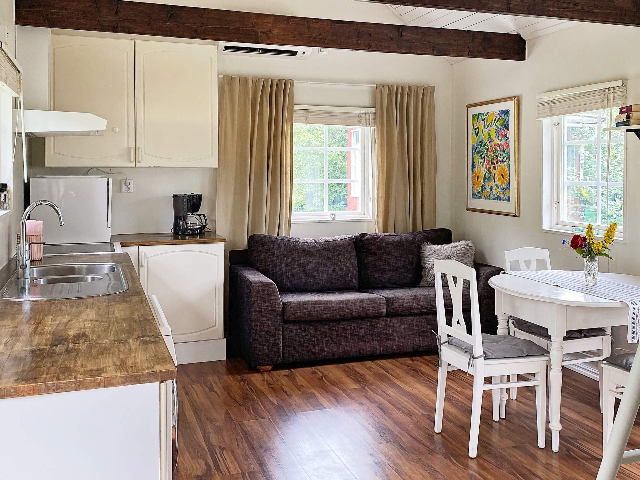Huset är byggt 2012 och har sovrum samt sovloft med vardera två bäddar. Tomten delas med ägarna som bor i huvudbyggnaden men läget är insynsskyddat och ni kan koppla av i lugn och ro med solbad, grillaftnar och andra uteaktiviteter ute på gräsmattan. Detta är ett riktigt smultronställe för att koppla av från storstadens stress, njuta av den vackra naturen och bara vara. Huset är beläget i ett lugnt villaområde med nära till badplats och fiskemöjligheter.