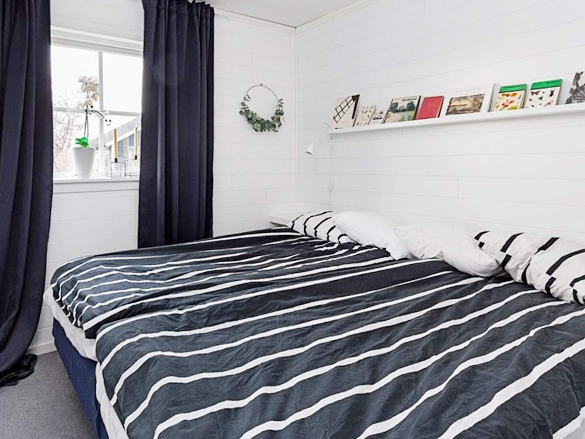 Ni sover i två sovrum. Det ena med en dubbelsäng, i det andra rummet med förhänge finns det en våningsäng med en 90cm säng upptill och en 120cm säng nertill. I badrummet finns handfat, wc och duschkabin.