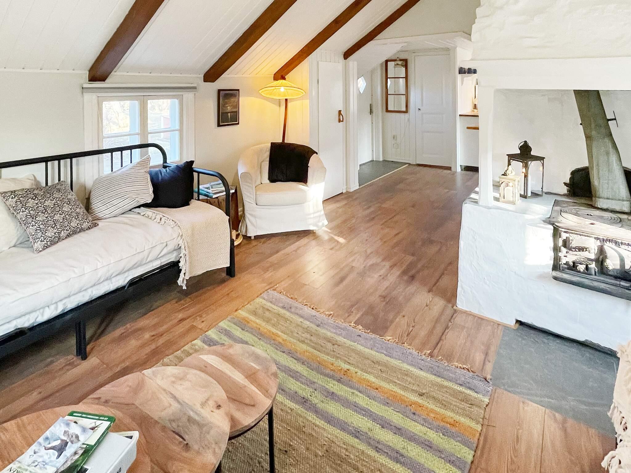 Huset har ett stort sällskapsrum med en vacker murad vedspis där ni kan tända ljus och njuta av atmosfären under de vackra takbjälkarna. Ingen eldning är tillåten i spisen. Ni har två snygga soffor som bäddas ut till bekväma dubbelsängar med sköna pocketresårmadrasser.