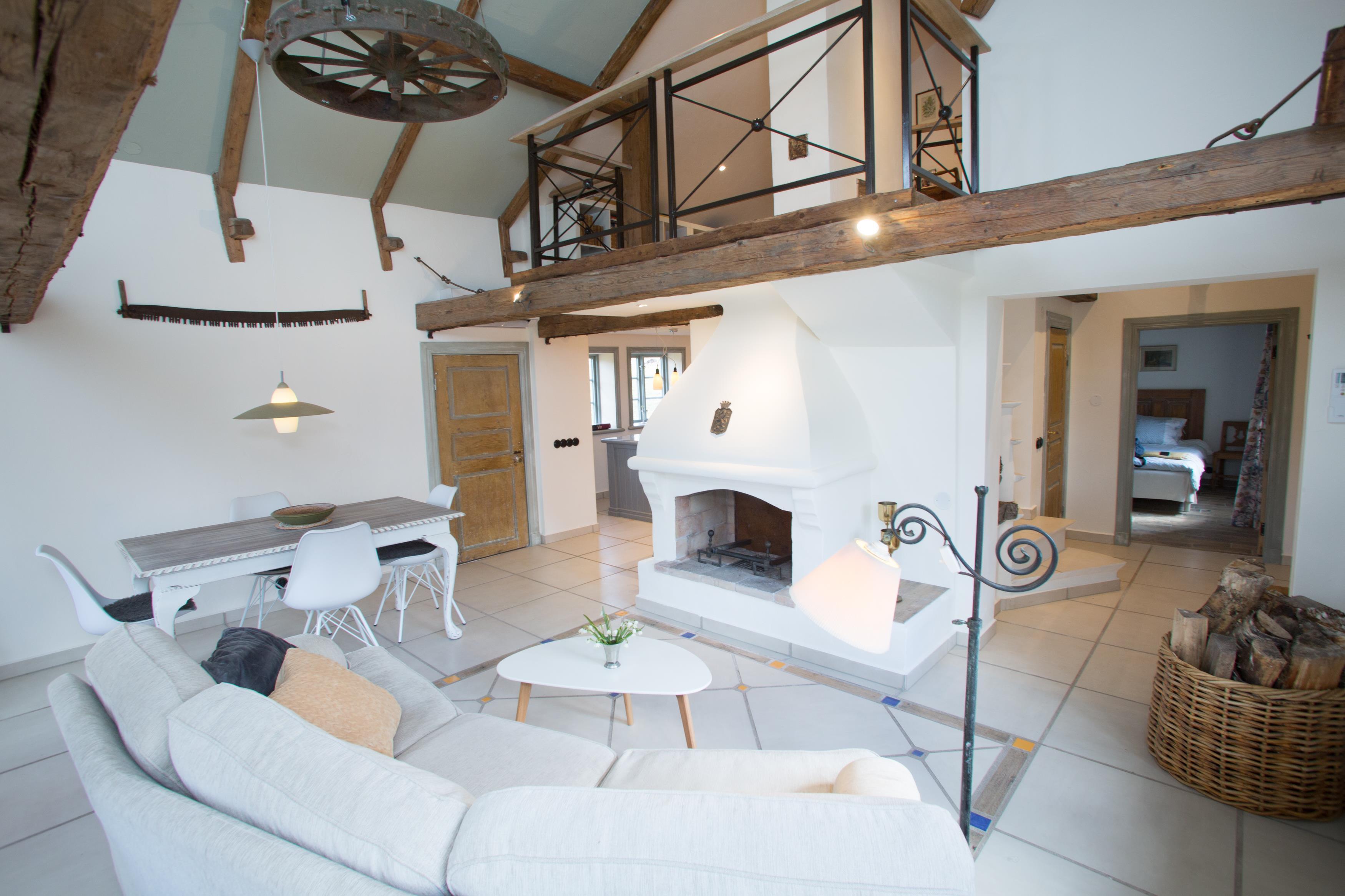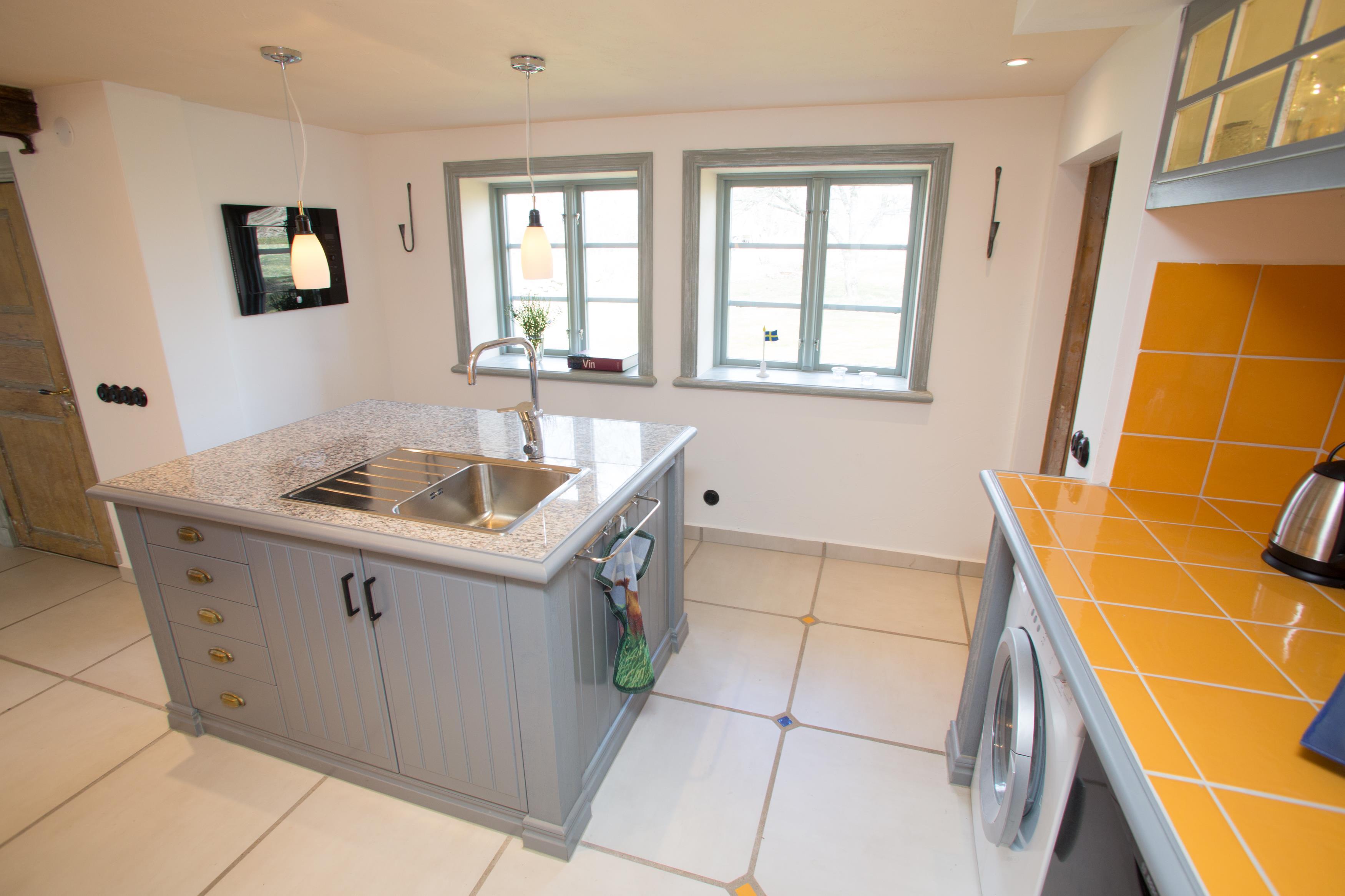 Det dejlige og veludstyrede køkken har opvaskemaskine, vaskemaskine, køle/fryseskab, mikroovn og gaskomfur, der også har 2 almindelige elektriske plader. Varmepumpe til lavt energiforbrug (el er inkluderet i din husleje) og et dejligt indeklima. Opholdsstuen har spiseplads og pejs. Der er indlagt fibernet, og tv'et har parabol med ca. 200 kanaler (mange tyske), men ingen svenske kanaler.