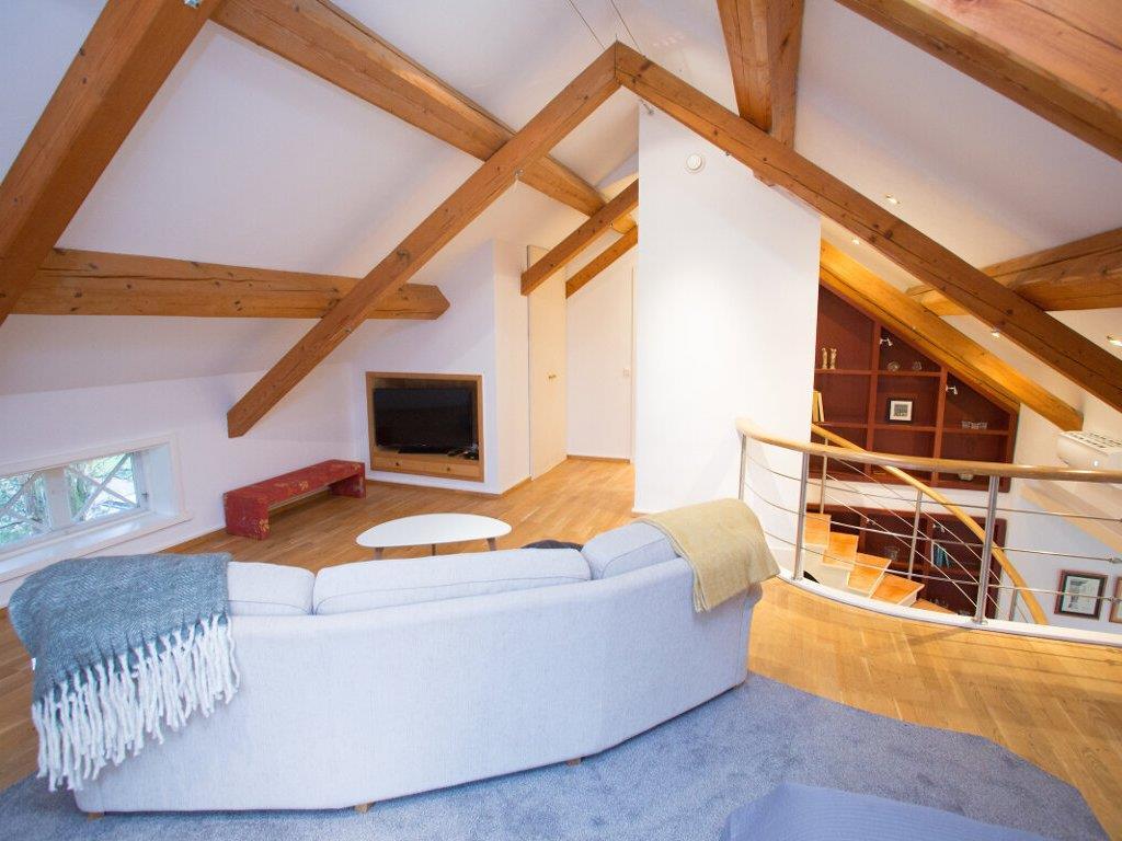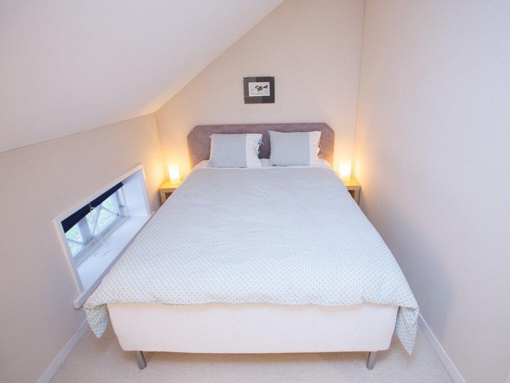 Alle sovepladser befinder sig på første sal. Der er et soveværelse med en dobbeltseng (180 cm) og et soveværelse med 2 enkeltsenge. Endelig er der en dobbeltseng (160 cm) i den dejlige åbenplan TV-stue med loft til kip. På førstesalen er der også et flisebadeværelse med toilet og badekar..