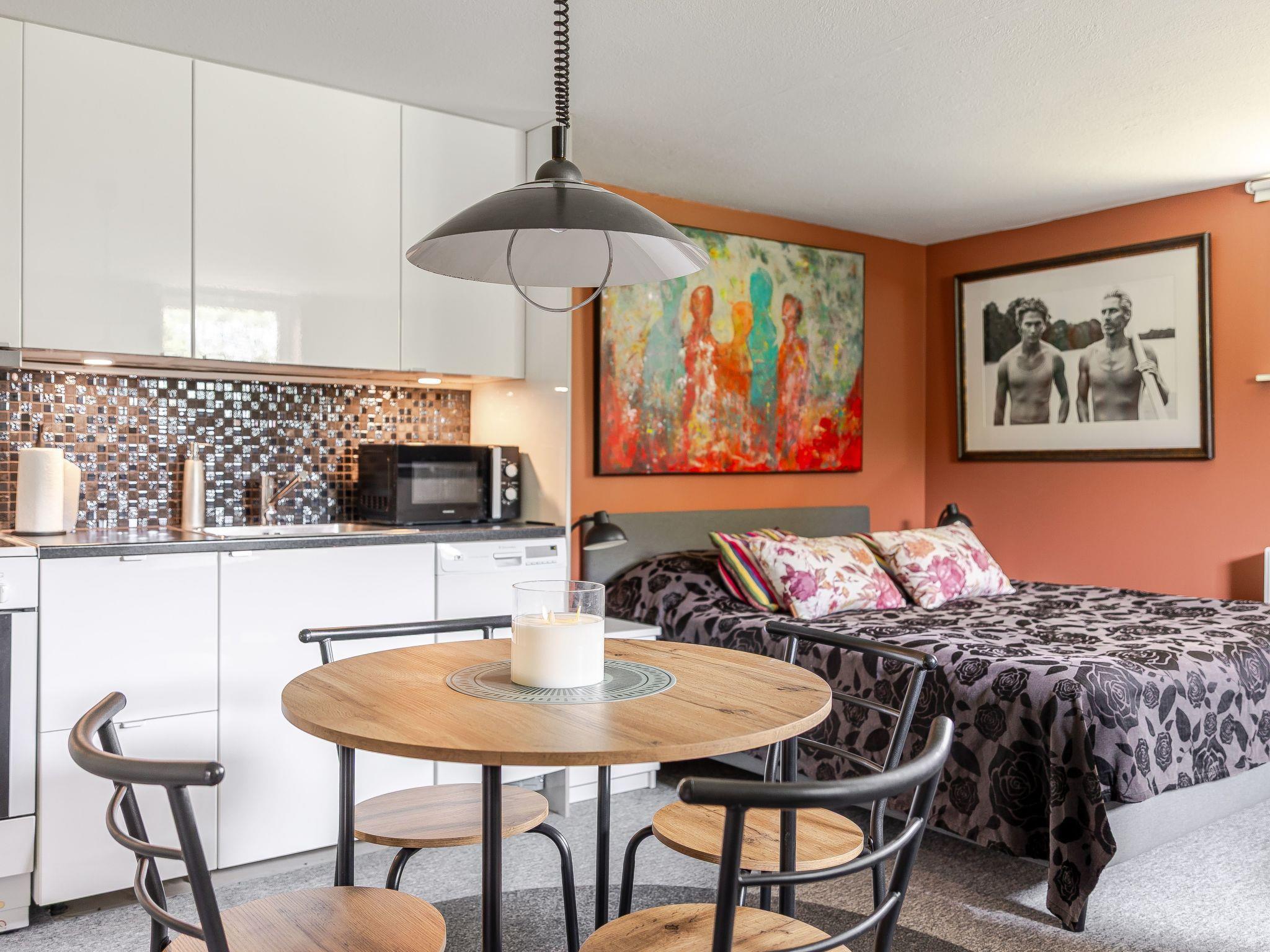 "Måsalycke", 1-room apartment 25 m2, on the lower ground floor. Simple furnishings: open living/sleeping room with 1 double bed (160 cm, length 200 cm), dining table and TV. Open kitchen (4 hot plates, oven, dishwasher, toaster, kettle, microwave, freezer, electric coffee machine). Shower/WC. Heating. Facilities: Internet (WiFi, free). Please note: non-smoking house.