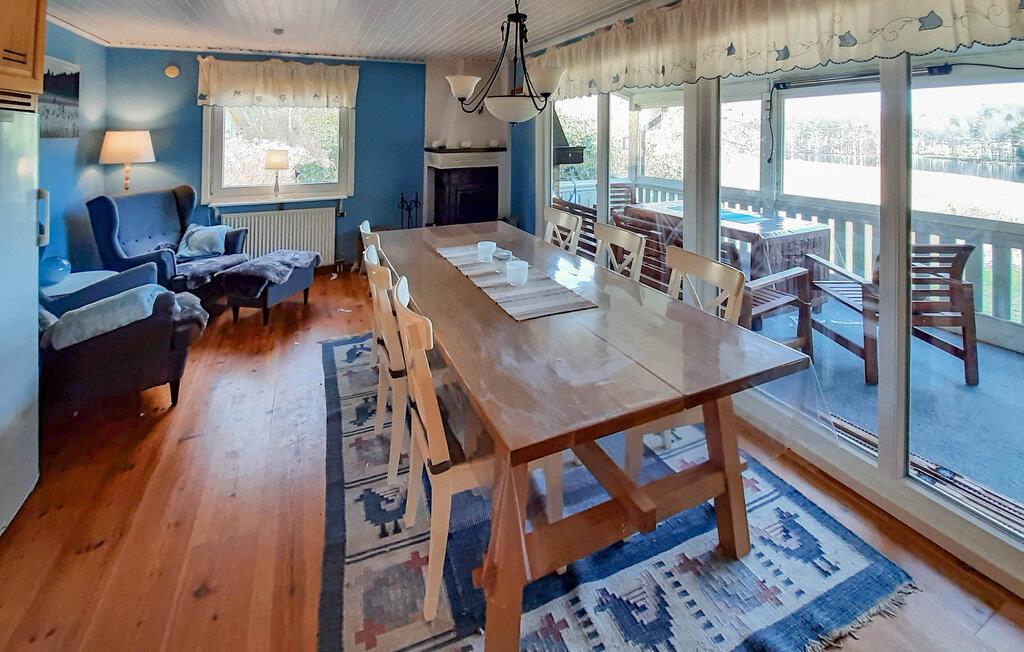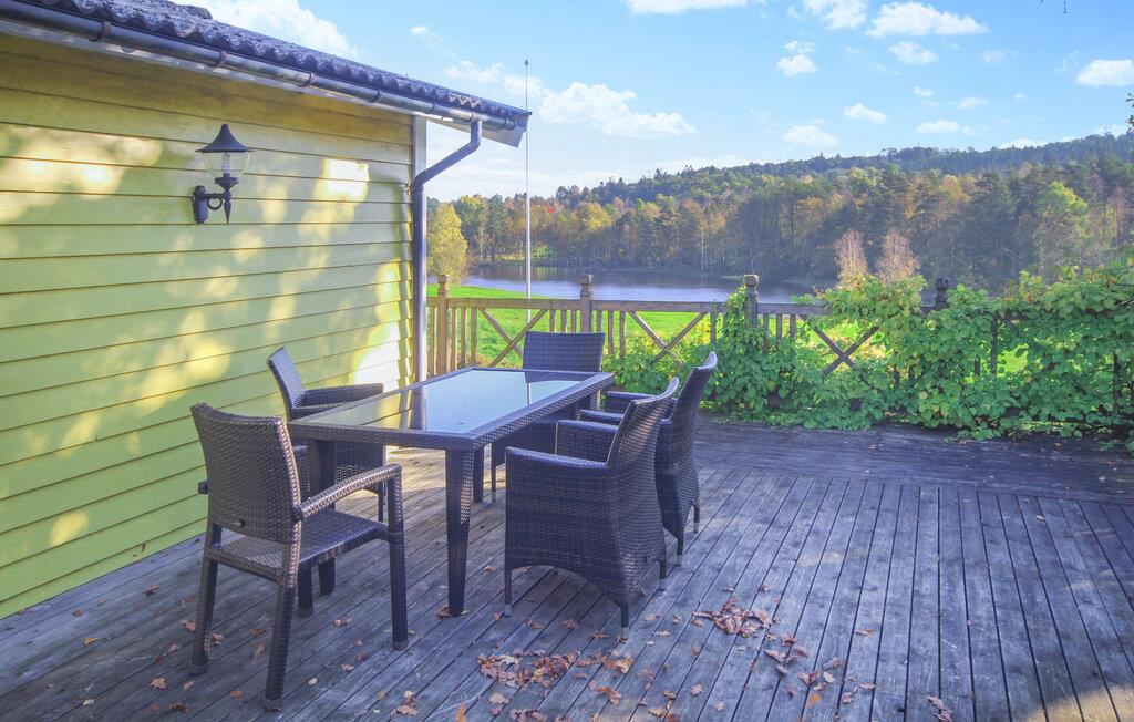 Velkommen til dette nydelige træhus, der ligger få skridt fra en skøn sø og i idylliske, naturskønne omgivelser. Huset er pænt indrettet med gode møbler, et godt udstyret køkken og store vinduer, der giver dagslys til stuen og en fremragende udsigt til søen. Efter dagens muntre leg og en lækker aftensmad kan I fyre op i pejsen, der giver varme og det helt rigtige lydtapet til brætspilshygge eller boglæsning og et godt glas vin i sofaen.