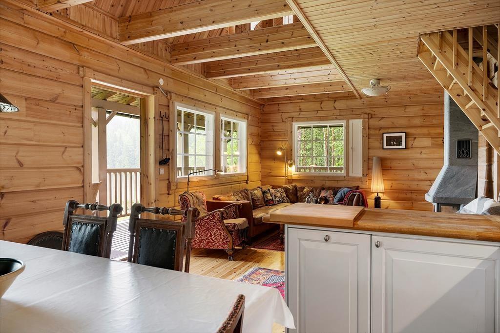 Sommerhus i Filipstad, Midtsverige, med plads til 8 voksne. Der er en hyggelig indretning med bl.a. brændeovn, og du finder desuden opvaskemaskine i boligen.