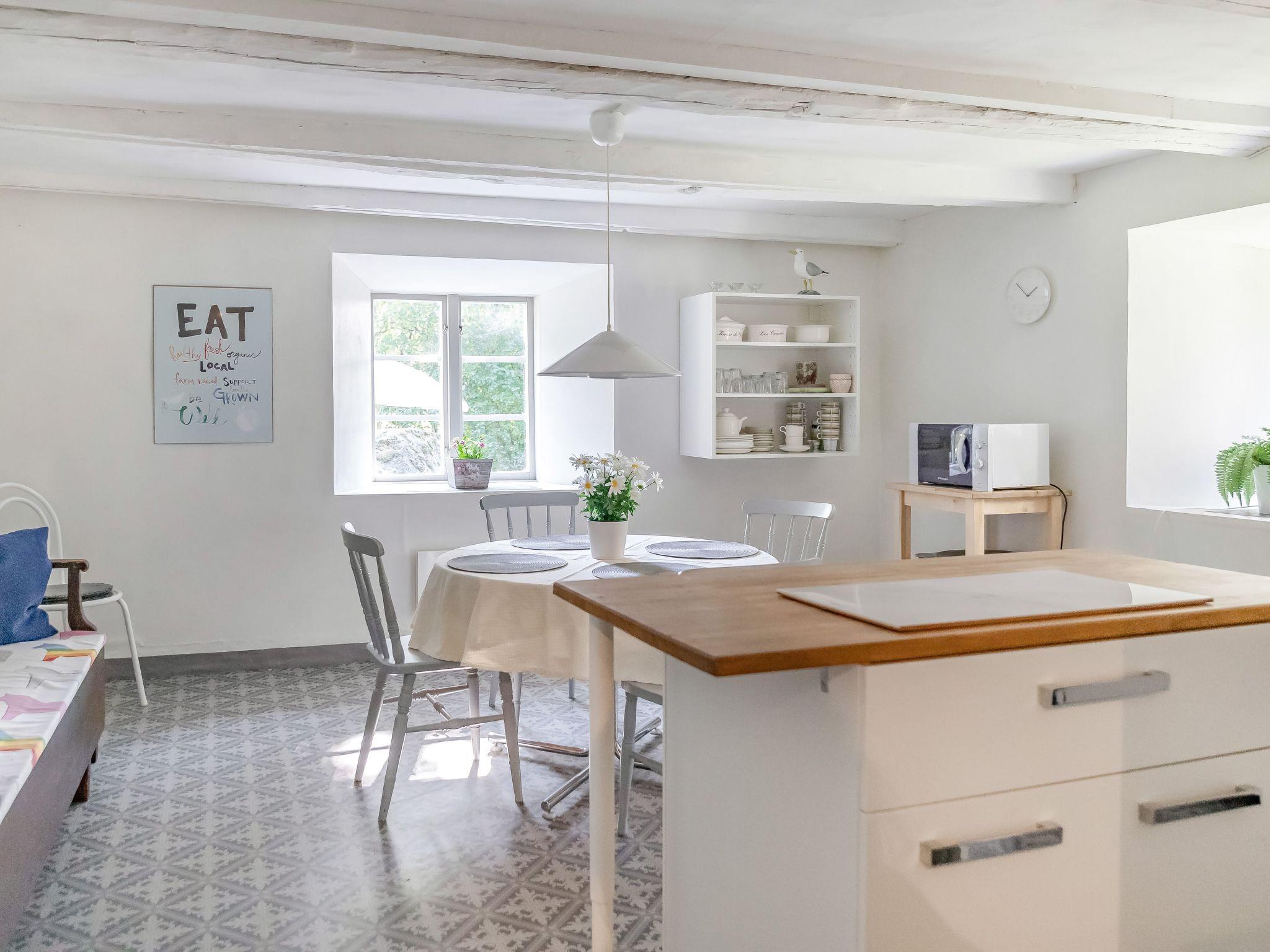 "Bolhyttan", 3-room house 95 m2 on 2 levels. Comfortable furnishings: living/sleeping room with 1 double sofabed and satellite TV. Open kitchen (4 induction hot plates, toaster, kettle, microwave, freezer, electric coffee machine) with Scandinavian wood stove and dining table. Upper floor: 1 room with sloping ceilings, ceiling height 160 - 190 cm with 2 beds (105 cm, length 200 cm). 1 room with sloping ceilings, ceiling height 160 - 190 cm with 3 beds (90 cm, length 200 cm). Shower/WC. Electric heating. Wooden floors. Terrace roofed. Terrace furniture, barbecue (portable). View of the lake. Facilities: washing machine, iron, children's high chair, baby cot. Internet (WiFi, free). Please note: non-smoking house. Maximum 2 pets/ dogs allowed. Smoke alarm, fire extinguisher. Freezer approx. 60 l. SE06305