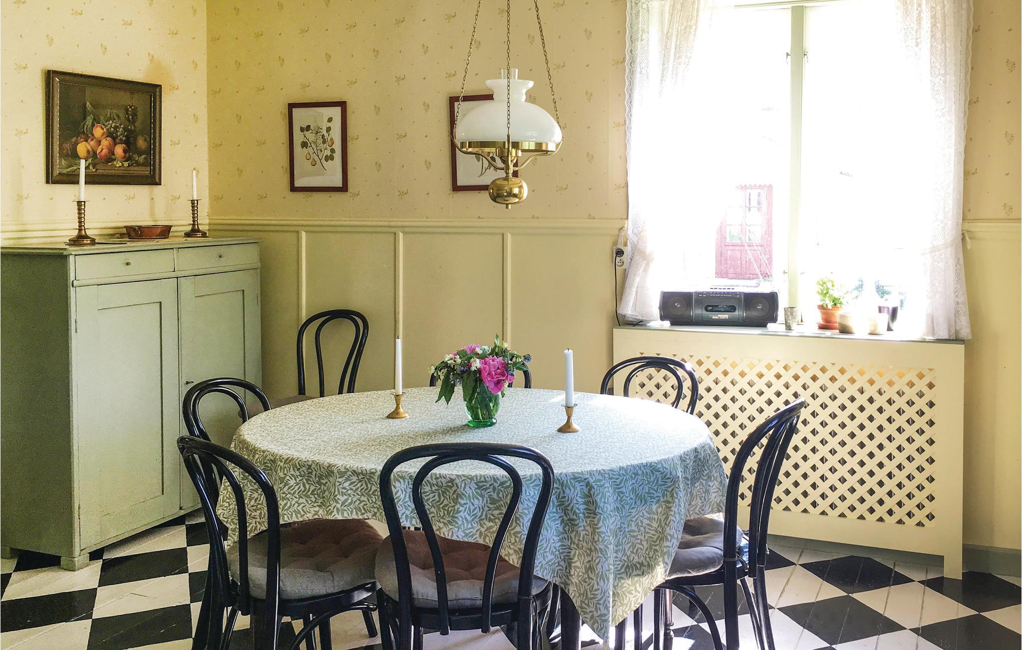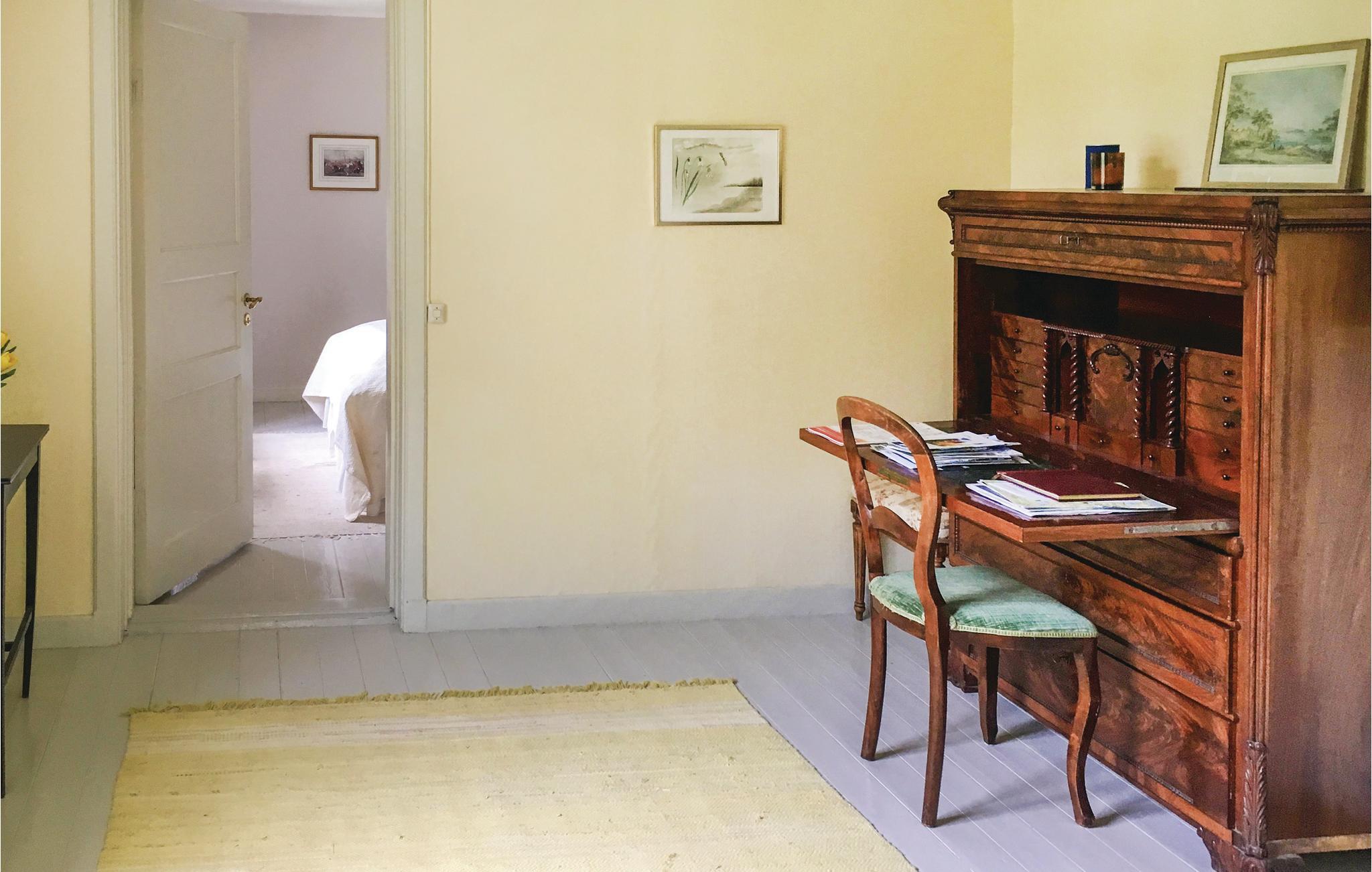 Fløjbygning på den berømte Skagersholms Herregård som driver et aktivt landbrug og hvor gårdens ejer stadig bor. Der er kun en lille spadseretur på 400 meter ned til søen Skagern som er en af Sveriges mest artsrige søer. Her kan I også tage en svømmetur i det klare vand. Vil i fiske giver det bedst resultat hvis I gør det fra husets båd ude på vandet. Der er en smuk ride- og cykelsti rundt om søen. Til Laxå med forskellige butikker er der 18 km. I kan også køre til Örebro og Mariestad. Får børnene lov at bestemme vil de sikkert gerne en tur til Skara Sommarland (97 km). I kan også besøge Läckö Slott eller køre til Tiveden Nationalpark ((27 km) hvor I kan vandre eller cykle gennem Sveriges sydligst beliggende urskov med søer og store klippeblokke.
