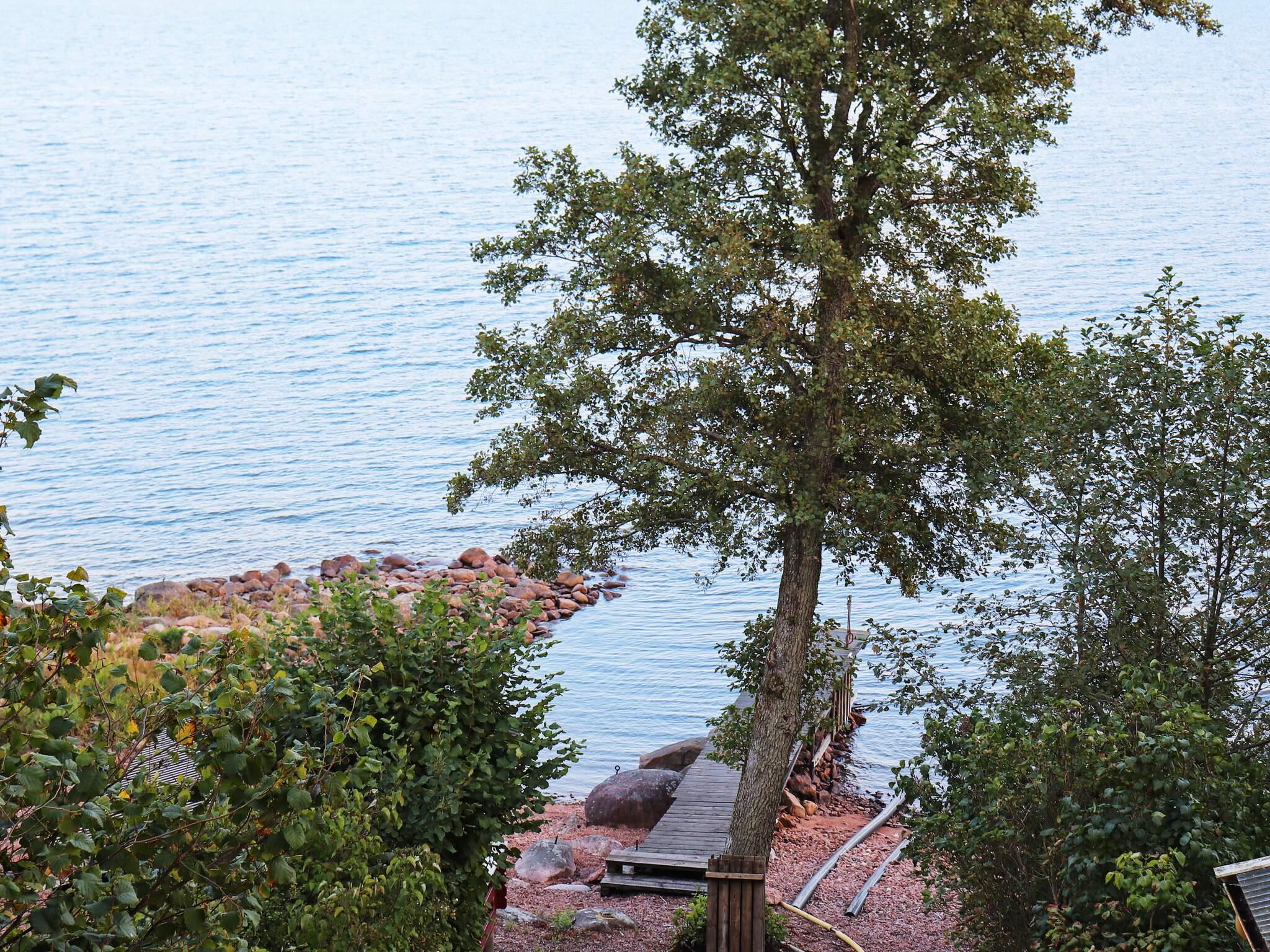 Nedanför stugan går en liten stig, en något brant trappa leder ned till den privata badstranden. Det är en mysig liten badstrand med stenbotten, perfekt för morgon eller kvälls doppet eller bara sitta på bryggan för att njuta av den härliga utsikten. Husägarnas tips – badtofflor!