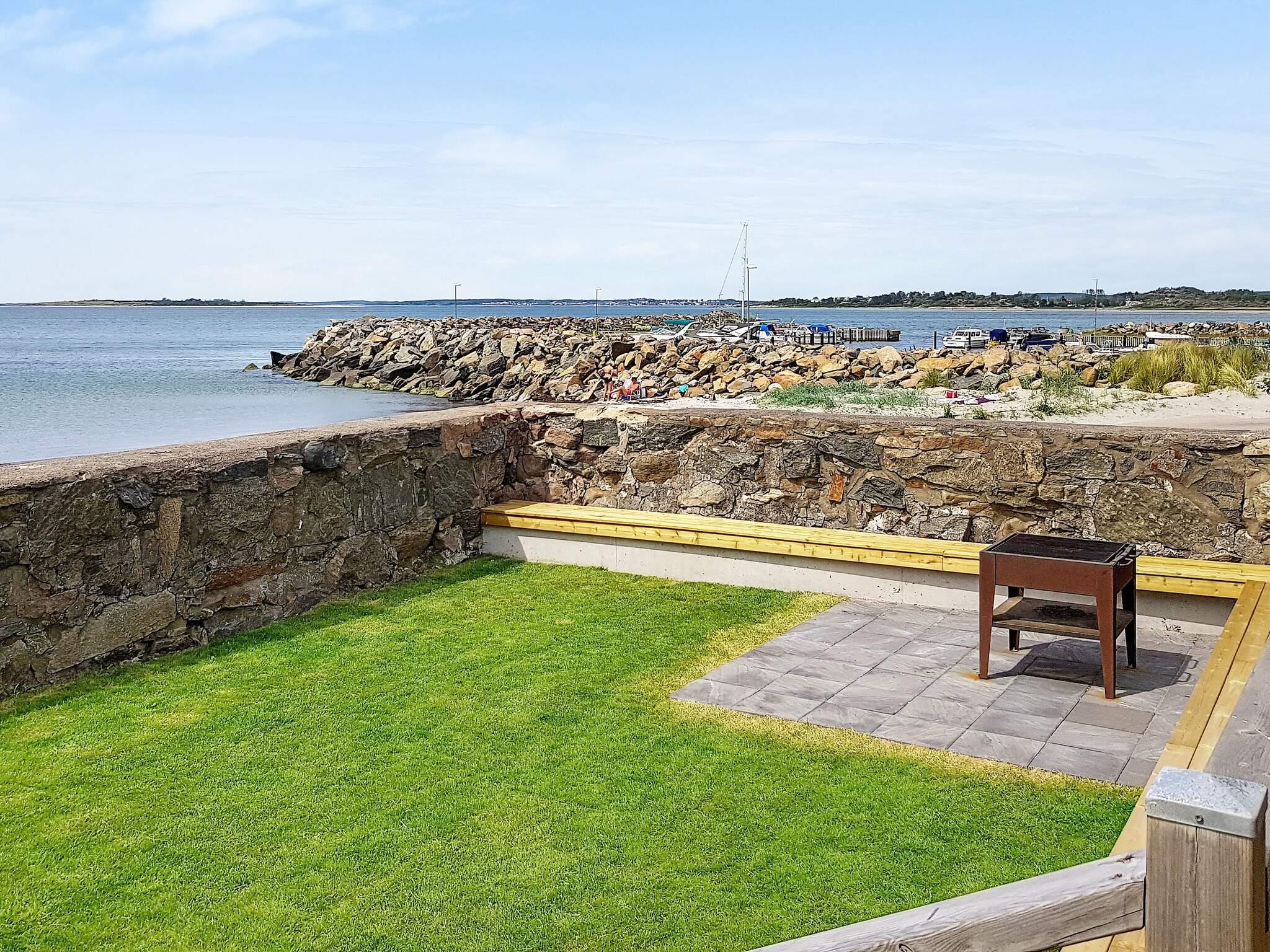 På baksidan av huset ligger den stora altanen där ni sannolikt kommer att tillbringa många, långa och fina kvällar. Utanför ligger en skön gräsmatta som sakta sluttar ned mot det vackra och lummiga området ned mot ån. På andra sidan av denna å (Löftaån) finns en motionsslinga där ni kan jogga eller ta en ”powerwalk” för att hålla igång. Annars är det naturligtvis väldigt attraktivt att utföra sina friluftsaktiviteter ned mot havet, inte minst under höst och vårmånaderna. Även vintern är skön vid och omkring detta hus; ta en riktigt frisk promenad en dag som havet är oroligt och regnet faller mer vågrätt än lodrätt och gå sedan in i stugvärmen, värm en kopp te och kryp upp i soffan för att gemensamt titta på en riktigt spännande film på TV:n.