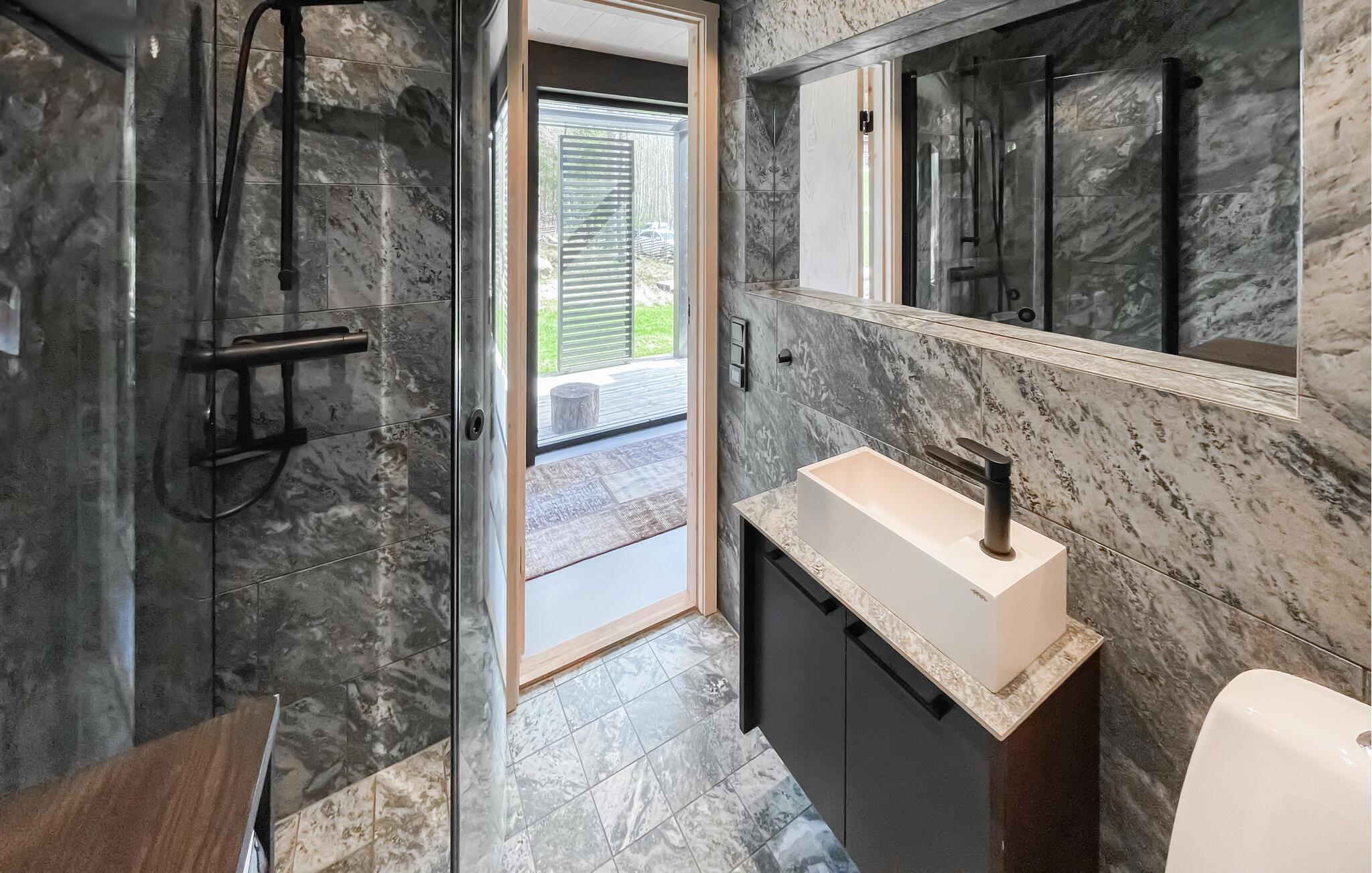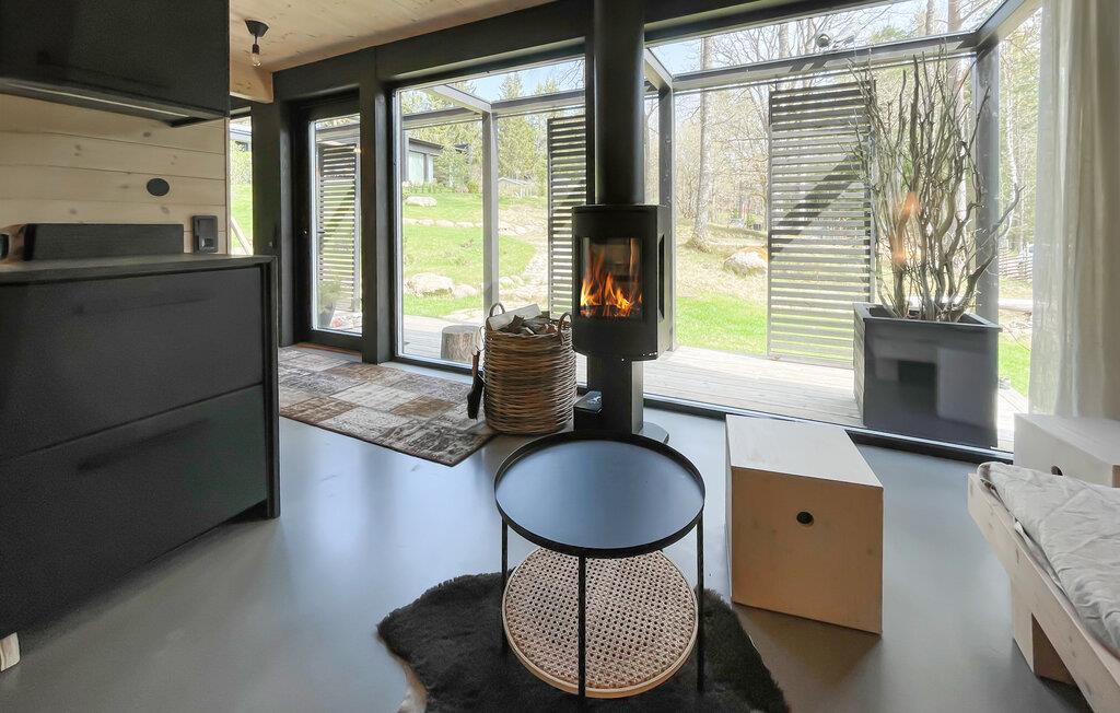 Huset byder jer velkommen i en idyllisk beliggenhed tæt på en sø og tilbyder de bedste betingelser for en behagelig pause fra hverdagen sammen med familien eller venner. Her er der gode muligheder for udendørsaktiviteter. Med sin attraktive indretning og de store vinduer, der inviterer naturen indenfor, er jeres hus det ideelle sted at slappe af og få pulsen ned efter nogle aktive dage. Hyg jer sammen om aftenen, få genopfrisket dagens oplevelser, mens brændeovnen spreder sin behagelige varme, og nyd jeres fælles tid sammen.