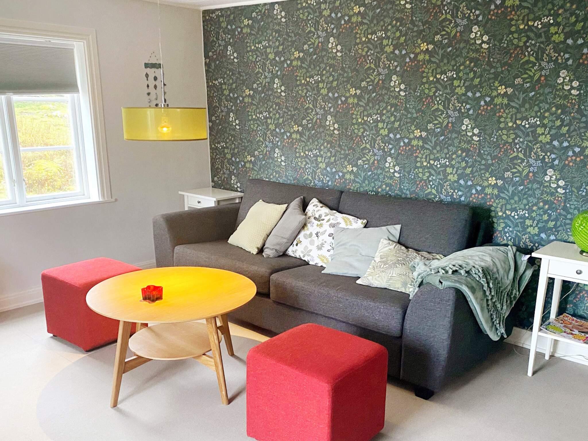 2 Opholdsstue: Kakkelovn, kakkelovn, kombipejs, radio, cd-afspiller, dvd-afspiller, tv